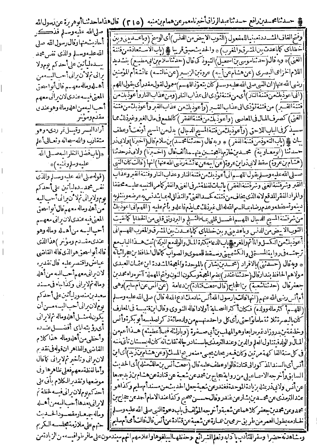 (اللهم إني أعوذ بك من فتنة النار وعذاب النار وفتنة القبر وعذاب القبر وشر فتنة الغنى وشر فتنة الفقر) بإثبات لفظة شر في الغنى كما مرّ التنبيه عليه محققًا، والمراد الفقر المدقع لأنه الذي يخاف من فتنته كحسد الغنيّ والتذلل له بما يتدنس به عرضه وينثلم به دينه وتسخطه وعدم رضاه بما قسم الله له إلى غير ذلك مما يذم فاعله ويأثم عليه (اللهم إني أعوذ بك من شر فتنة المسيح الدجال، اللهم اغسل قلبي بماء الثلج والبرد ونقّ قلبي في الخطايا كما نقيت الثوب الأبيض من الدنس وباعد بيني وبين خطاياي كما باعدت بين المشرق والمغرب، اللهم إني أعوذ بك من الكسل والمأثم والمغرم).
