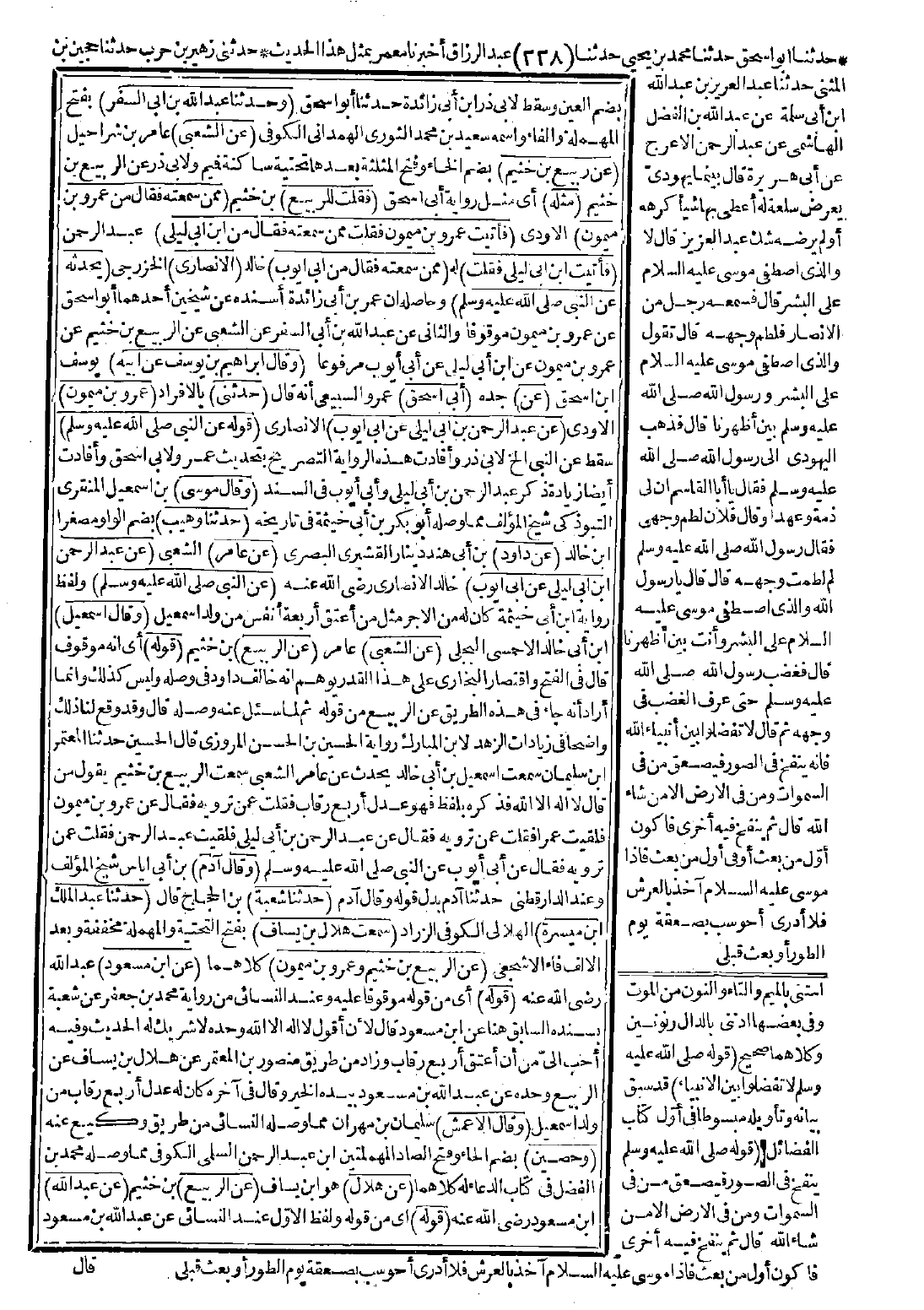سمعت الربيع بن خثيم يقول من قال: لا إله إلا الله فذكره بلفظ فهو عدل أربع رقاب فقلت: عمن ترويه فقال: عن عمرو بن ميمون فلقيت عمرًا فقلت: عمن ترويه فقال: عن عبد الرَّحمن بن أبي ليلى فلقيت عبد الرَّحمن فقلت: عمن ترويه فقال: عن أبي أيوب عن النبي -صَلَّى اللَّهُ عَلَيْهِ وَسَلَّمَ-.
