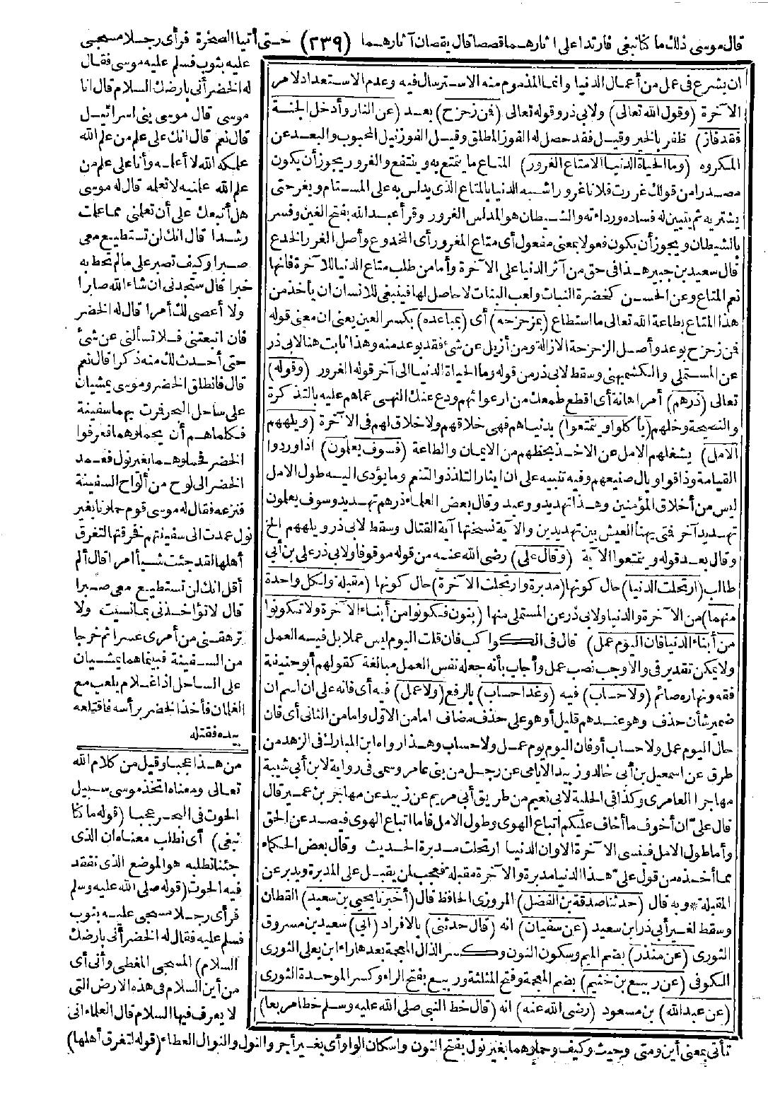 ({وما الحياة الدنيا إلا متاع الغرور}) [آل عمران: 185] المتاع ما يتمتع به وينتفع والغرور يجوز أن يكون مصدرًا من قولك غررت فلانًا غرورًا شبه الدنيا بالمتاع الذي يدل به على المستام ويغر حتى يشتريه ثم يتبين له فساده ورداءته والشيطان هو المدلس الغرور، وقرأ عبد الله بفتح الغين وفسّر بالشيطان، ويجوز أن يكون فعولاً بمعنى مفعول أي متاع الغرور أي المخدوع وأصل الغرر الخدع. قال سعيد بن جبير: هذا في حق من آثر الدنيا على الآخرة وأما من طلب متاع الدنيا للآخرة فإنها نعم المتاع، وعن الحسن كخضرة النبات ولعب البنات لا حاصل لها فينبغي للإنسان أن يأخذ من هذا المتاع بطاعة الله تعالى ما استطاع (بمزحزحه) أي (بمباعده) بكسر العين يعني أن معنى قوله فمن زحزح بوعد وأصل الزحزحة الإِزالة ومن أزيل عن شيء فقد بوعد منه وهذا ثابت هنا لأبي ذر عن المستملي والكشميهني، وسقط لأبي ذر من قوله {وما الحياة الدنيا} إلى قوله {الغرور}.