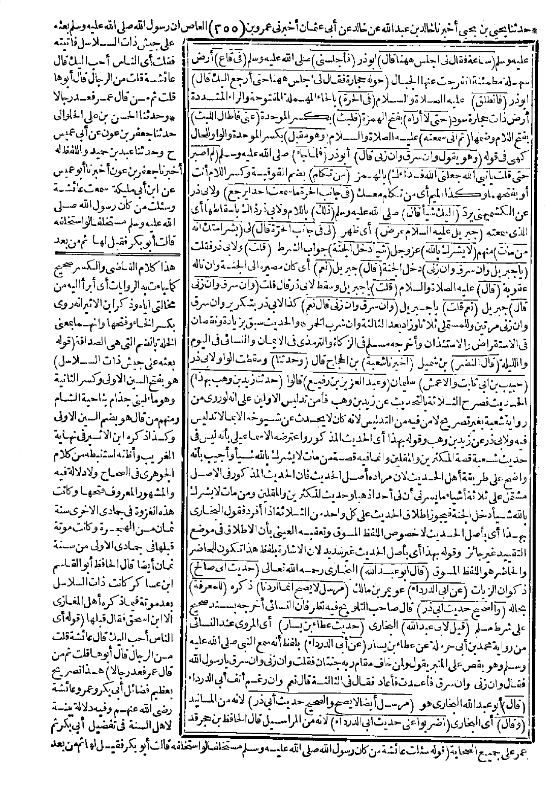 (قال النضر) بن شميل (أخبرنا شعبة) بن الحجاج قال: (وحدّثنا) وسقطت لأبي ذر الواو (حبيب بن أبي ثابت والأعمش) سليمان (وعبد العزيز بن رفيع) قالوا: (حدّثنا زيد بن وهب بهذا) الحديث فصرح الثلاثة بالتحديث عن زيد بن وهب فأمن تدليس الأولين على أنه لو روي من رواية شعبة بغير تصريح لأمن فيه من التدليس لأنه كان لا يحدث عن شيوخه إلا بما لا تدليس فيه، ولأبي ذر عن زيد بن وهب وقوله بهذا أي الحديث المذكور، واعترضه الإسماعيلي بأنه ليس في حديث شعبة قصة المكثرين والمقلين، وإنما فيه قصة من مات لا يشرك بالله شيئًا.