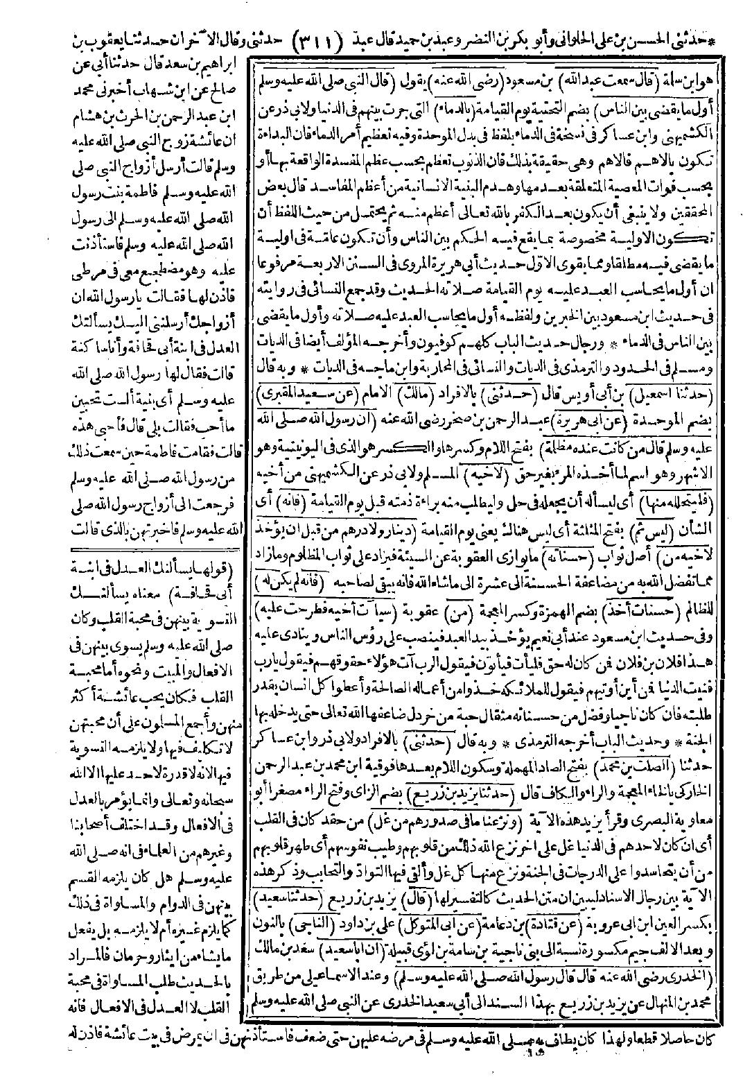 6535 - حَدَّثَنِى الصَّلْتُ بْنُ مُحَمَّدٍ، حَدَّثَنَا يَزِيدُ بْنُ زُرَيْعٍ، {وَنَزَعْنَا مَا فِى صُدُورِهِمْ مِنْ غِلٍّ} قَالَ: حَدَّثَنَا سَعِيدٌ عَنْ قَتَادَةَ، عَنْ أَبِى الْمُتَوَكِّلِ النَّاجِىِّ أَنَّ أَبَا سَعِيدٍ الْخُدْرِىَّ - رضى الله عنه - قَالَ: قَالَ رَسُولُ اللَّهِ -صَلَّى اللَّهُ عَلَيْهِ وَسَلَّمَ-: «يَخْلُصُ الْمُؤْمِنُونَ مِنَ النَّارِ فَيُحْبَسُونَ عَلَى قَنْطَرَةٍ بَيْنَ الْجَنَّةِ وَالنَّارِ، فَيُقَصُّ لِبَعْضِهِمْ مِنْ بَعْضٍ مَظَالِمُ كَانَتْ بَيْنَهُمْ فِى الدُّنْيَا، حَتَّى إِذَا هُذِّبُوا وَنُقُّوا أُذِنَ لَهُمْ فِى دُخُولِ الْجَنَّةِ، فَوَالَّذِى نَفْسُ مُحَمَّدٍ بِيَدِهِ لأَحَدُهُمْ أَهْدَى بِمَنْزِلِهِ فِى الْجَنَّةِ مِنْهُ بِمَنْزِلِهِ كَانَ فِى الدُّنْيَا».