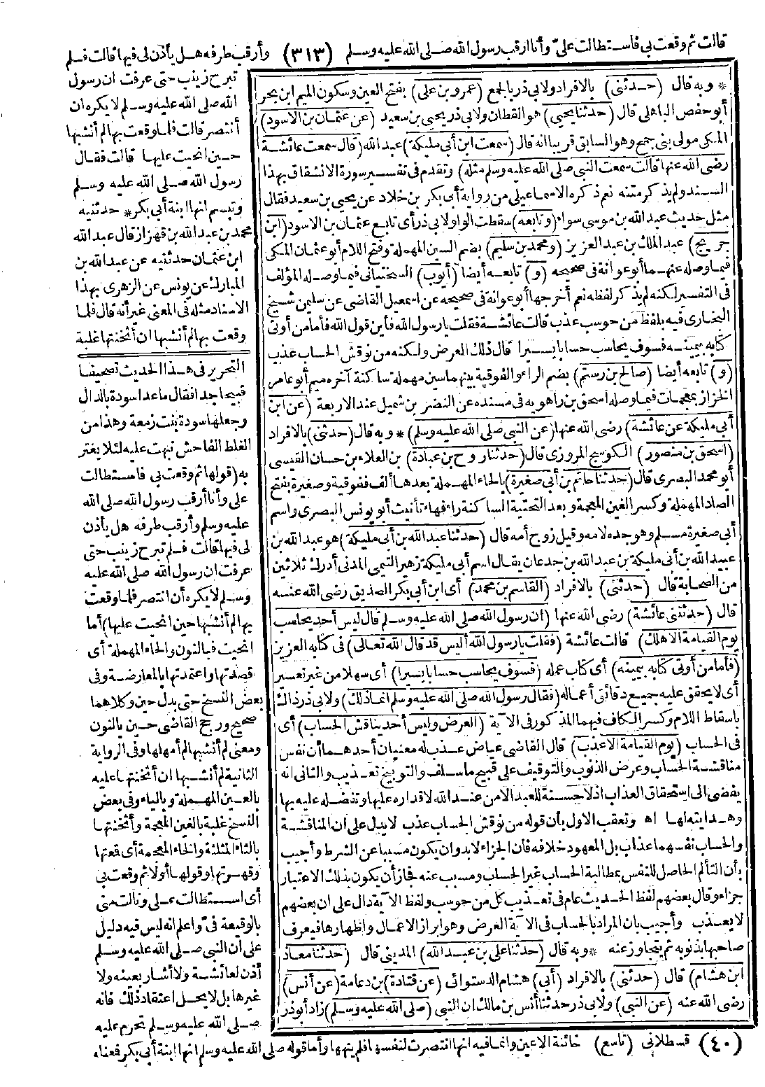 6537 - حَدَّثَنِى إِسْحَاقُ بْنُ مَنْصُورٍ، حَدَّثَنَا رَوْحُ بْنُ عُبَادَةَ، حَدَّثَنَا حَاتِمُ بْنُ أَبِى صَغِيرَةَ، حَدَّثَنَا عَبْدُ اللَّهِ بْنُ أَبِى مُلَيْكَةَ، حَدَّثَنِى الْقَاسِمُ بْنُ مُحَمَّدٍ، حَدَّثَتْنِى عَائِشَةُ أَنَّ رَسُولَ اللَّهِ -صَلَّى اللَّهُ عَلَيْهِ وَسَلَّمَ- قَالَ: «لَيْسَ أَحَدٌ يُحَاسَبُ يَوْمَ الْقِيَامَةِ إِلاَّ هَلَكَ» فَقُلْتُ: يَا رَسُولَ اللَّهِ أَلَيْسَ قَدْ قَالَ اللَّهُ تَعَالَى: {فَأَمَّا مَنْ أُوتِىَ كِتَابَهُ بِيَمِينِهِ * فَسَوْفَ يُحَاسَبُ حِسَابًا يَسِيرًا} [الانشقاق: 8] فَقَالَ رَسُولُ اللَّهِ -صَلَّى اللَّهُ عَلَيْهِ وَسَلَّمَ-: «إِنَّمَا ذَلِكِ الْعَرْضُ وَلَيْسَ أَحَدٌ يُنَاقَشُ الْحِسَابَ يَوْمَ الْقِيَامَةِ إِلاَّ عُذِّبَ».