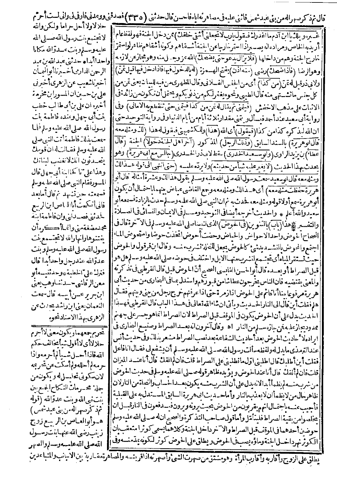 وأما قول صاحب التذكرة والصحيح أن له -صَلَّى اللَّهُ عَلَيْهِ وَسَلَّمَ- حوضين أحدهما في الموقف قبل الصراط، والآخر داخل الجنة وكلاهما يسمى كوثرًا متعقب بأن الكوثر نهر داخل الجنة وماؤه يصب في الحوض، ويطلق على الحوض كوثر لكونه يمدّ منه، وفي