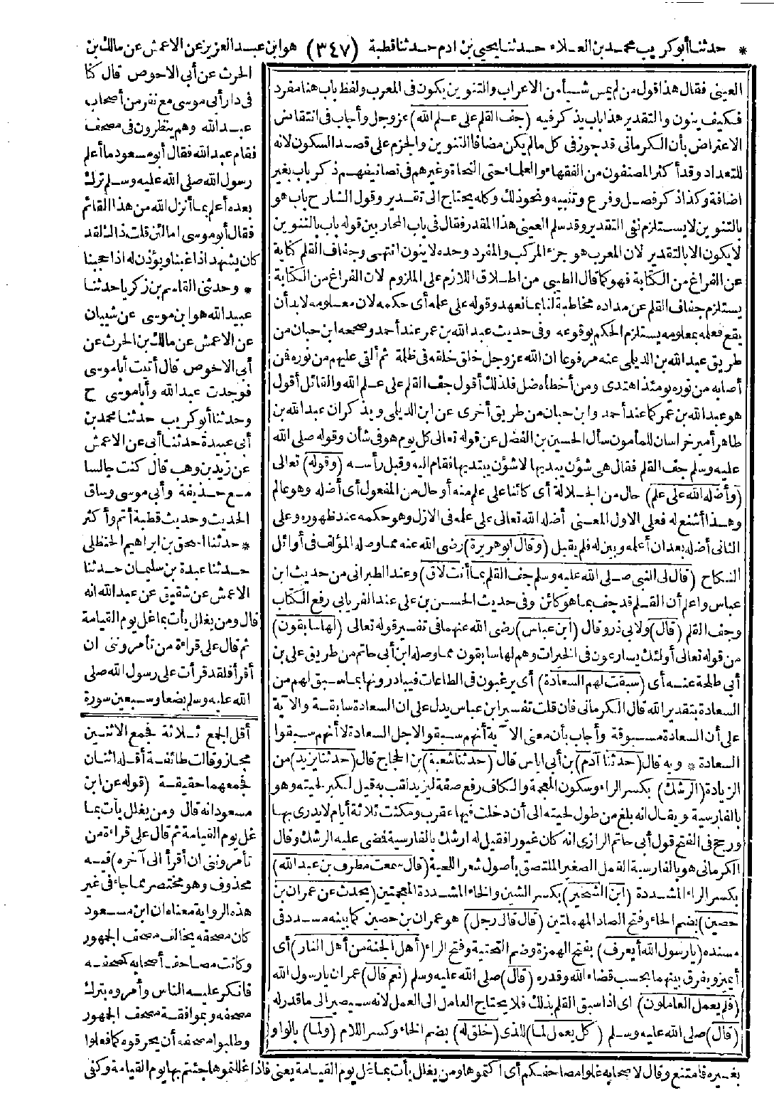 وبه قال: (حدّثنا آدم) بن أبي إياس قال: (حدّثنا شعبة) بن الحجاج قال: (حدّثنا يزيد) من الزيادة (الرشك) بكسر الراء وسكون المعجمة والكاف رفع صفة ليزيد لقب به قيل لكبر لحيته وهو بالفارسية ويقال إنه بلغ من طول لحيته إلى أن دخلت فيها عقرب ومكثت ثلاثة أيام لا يدري بها، ورجح في الفتح قول أبي حاتم الرازي أنه كان غيورًا فقيل له: ارشك بالفارسية فمضى عليه الرشك. وقال الكرماني: هو بالفارسية القمل الصغير الملتصق بأصول شعر اللحية (قال: سمعت مطرف بن عبد الله) بكسر الراء المشددة (ابن الشخير) بكسر الشين والخاء المشددة المعجمتين (يحدث عن عمران بن حصين) بضم الحاء وفتح الصاد المهملتين (قال: قال رجل) هو عمران بن حصين كما بينه مسدد في مسنده: (يا رسول الله أيعرف) بفتخ الهمزة وضم التحتية وفتح الراء (أهل الجنة من أهل النار) أي أيميز ويفرق بينهما بحسب قضاء الله وقدره (قال) -صَلَّى اللَّهُ عَلَيْهِ وَسَلَّمَ-: