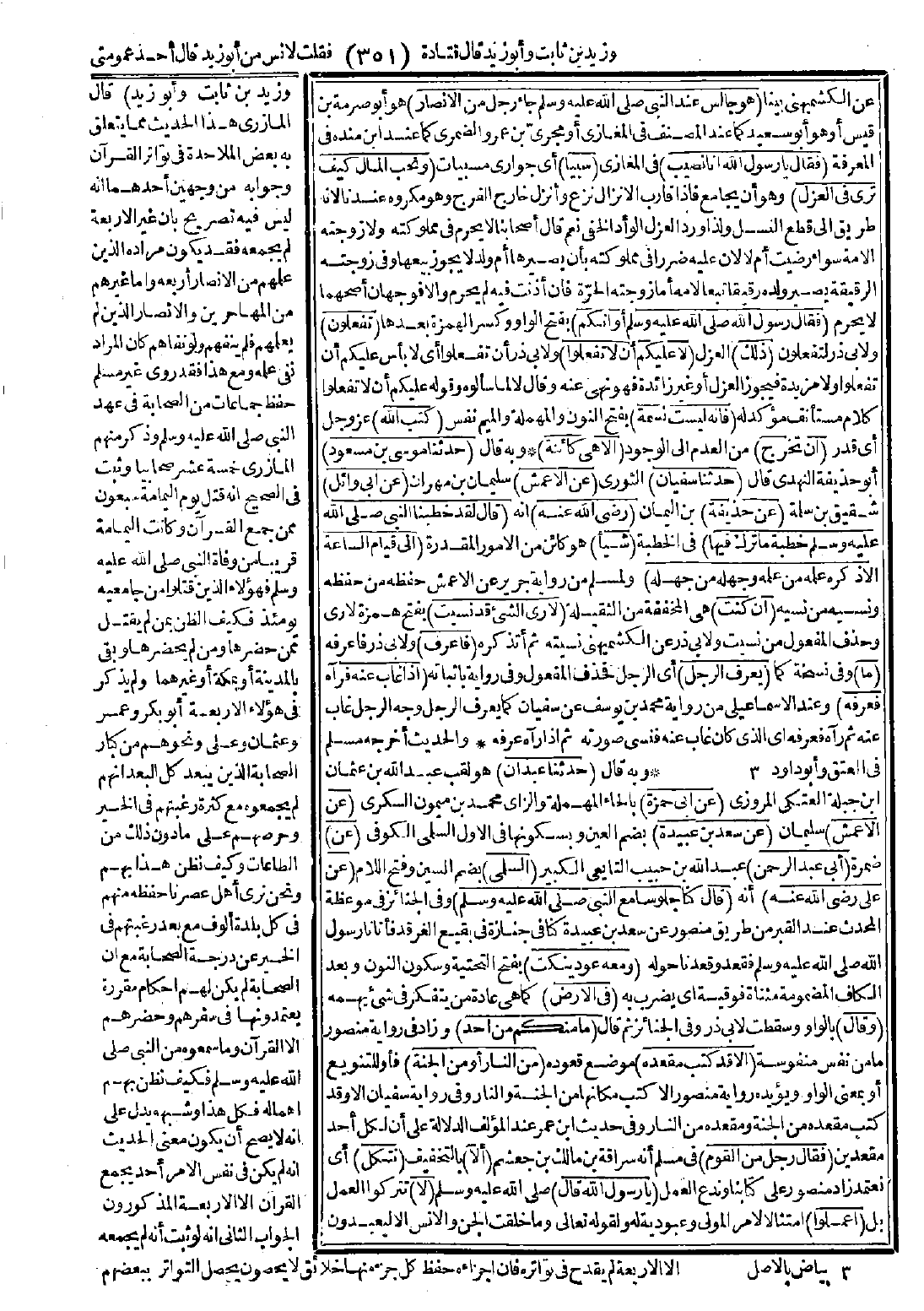 عن الكشميهني بينا (هو جالس عند النبي -صَلَّى اللَّهُ عَلَيْهِ وَسَلَّمَ- جاء رجل من الأنصار) هو أبو صرمة بن قيس أو هو أبو سعيد كما عند المصنف في المغازي أو مجري بن عمرو الضمري كما عند ابن منده في المعرفة (فقال: يا رسول الله إنّا نصيب) في المغازي (سببًا) أي جواري مسبيات (ونحب المال كيف ترى في العزل)؟ وهو أن يجامع فإذا قارب الإنزال نزع وأنزل خارج الفرج وهو مكروه عندنا لأنه طريق إلى قطع النسل، ولذا ورد العزل الوأد الخفي قال: أصحابنا لا يحرم في مملوكته ولا زوجته الأمة سواء رضيت أم لا لأن عليه ضررًا في مملوكته بأن يصيرها أم ولد لا يجوز بيعها وفي زوجته الرقيقة يصير ولده رقيقًا تبعًا لأمه، أما زوجته الحرّة فإن أذنت فيه لم يحرم وإلا فوجهان أصحهما لا يحرم (فقال رسول الله -صَلَّى اللَّهُ عَلَيْهِ وَسَلَّمَ-):