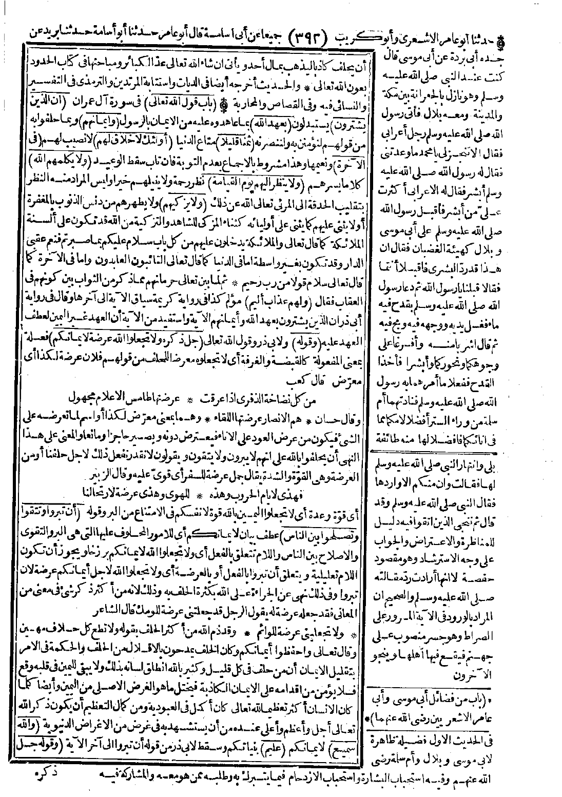 (باب قول الله تعالى) في سورة آل عمران: ({إن الذين يشترون}) يستبدلون ({بعهد الله}) بما عاهدون عليه من الأيمان بالرسول ({وأيمانهم}) وبما حلفوا به من قولهم لنؤمنن به ولننصرنه ({ثمنًا قليلاً}) متاع الدنيا ({أولئك لا خلاق لهم}) لا نصيب لهم ({في الآخرة}) ونعيمها وهذا مشروط بالإجماع بعدم التوبة فإن تاب سقط الوعيد ({ولا يكلمهم الله}) كلامًا يسرهم ({ولا ينظر إليهم يوم القيامة}) نظر رحمة ولا ينيلهم خيرًا وليس المراد منه النظر بتقليب الحدقة إلى المرئي تعالى الله عن ذلك ({ولا يزكيهم}) ولا يطهرهم من دنس الذنوب بالمغفرة أو لا يثني عليهم كما يثني على أوليائه كثناء المزكي للشاهد والتزكية من الله قد تكون على ألسنة الملائكة كما قال تعالى: {والملائكة يدخلون عليهم من كل باب سلام عليكم بما صبرتم فنعم عقبى الدار} [الرعد: 24] وقد تكون بغير واسطة إما في الدنيا كما قال تعالى {التائبون العابدون} [التوبة: 112] وأما في الآخرة كما قال تعالى {سلام قولاً من رب رحيم} [يس: 58].