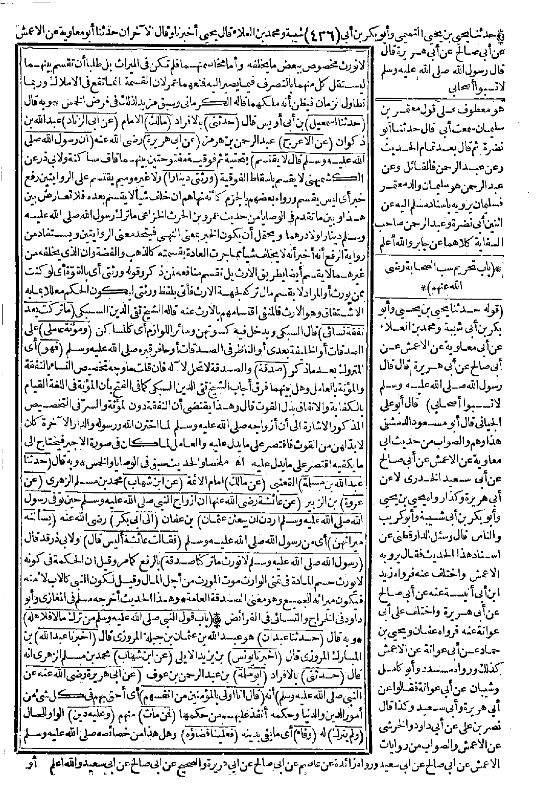 وبه قال: (حدّثنا عبد الله بن مسلمة) القعنبي (عن مالك) إمام الأئمة (عن ابن شهاب) محمد بن مسلم الزهري (عن عروة) بن الزبير (عن عائشة -رضي الله عنها- أن أزواج النبي -صَلَّى اللَّهُ عَلَيْهِ وَسَلَّمَ- حين توفي رسول الله -صَلَّى اللَّهُ عَلَيْهِ وَسَلَّمَ- أردن أن يبعثن عثمان) بن عفان (إلى أبي بكر) -رضي الله عنه- (يسألنه ميراثهن) أي من رسول الله -صَلَّى اللَّهُ عَلَيْهِ وَسَلَّمَ- (فقالت عائشة: أليس قال) ولأبي ذر قد قال: (رسول الله -صَلَّى اللَّهُ عَلَيْهِ وَسَلَّمَ- لا نورث ما تركنا صدقة) بالرفع كما مرّ، وقيل إن الحكمة في كونه لا يورث حسم المادة في تمني الوارث موت المورث من أجل المال، وقيل لكون النبي كالأب لأمته فيكون ميراثه للجميع وهو معنى الصدقة العامة.