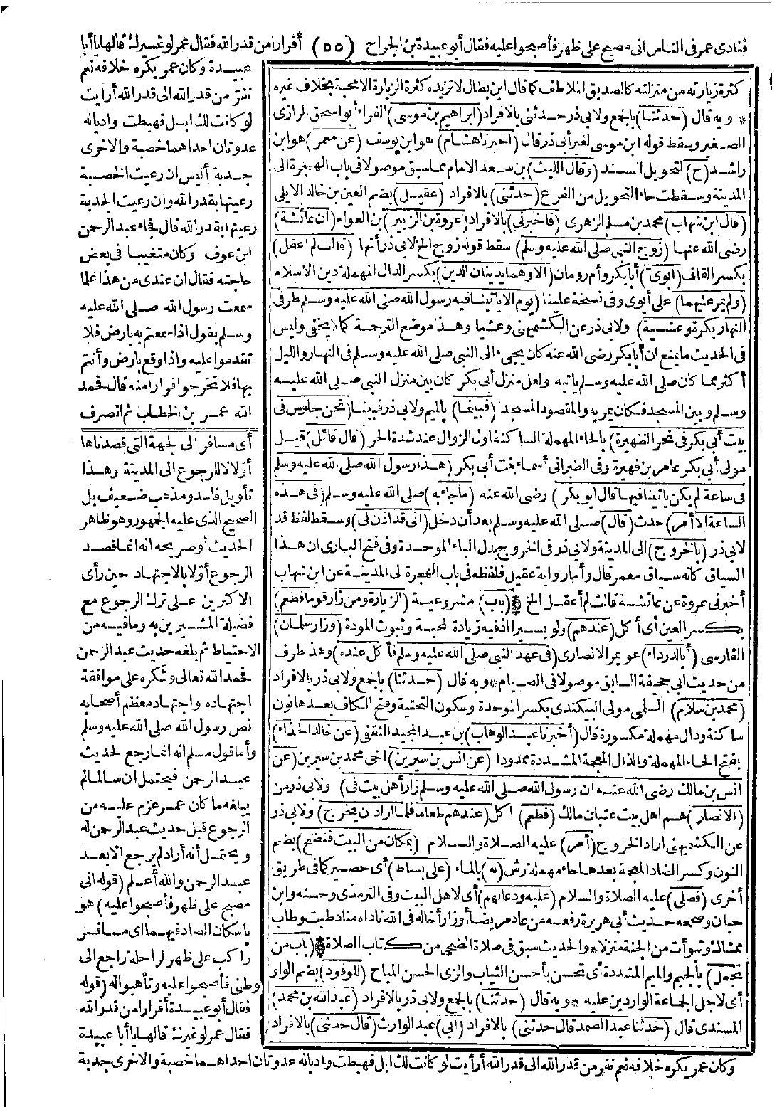 جلوس في بيت أبي بكر في نحر الظهيرة) بالحاء المهملة الساكنة أول الزوال عند شدة الحر (قال قائل): قيل مولى أبي بكر عامر بن فهيرة وفي الطبراني أسماء بنت أبي بكر (هذا رسول الله -صَلَّى اللَّهُ عَلَيْهِ وَسَلَّمَ- في ساعة لم يكن يأتينا فيها. قال أبو بكر) -رضي الله عنه-: (ما جاء به) -صَلَّى اللَّهُ عَلَيْهِ وَسَلَّمَ- (في هذه الساعة إلا أمر) حدث (قال) -صَلَّى اللَّهُ عَلَيْهِ وَسَلَّمَ- بعد أن دخل: (إني قد أذن لي) وسقط لفظ قد لأبي ذر (بالخروج) إلى المدينة ولأبي ذر في الخروج بدل الباء الموحدة، وفي فتح الباري: إن هذا السياق كأنه سياق معمر قال: وأما رواية عقيل فلفظه في باب الهجرة إلى المدينة عن ابن شهاب أخبرني عروة عن عائشة قالت: لم أعقل الخ.