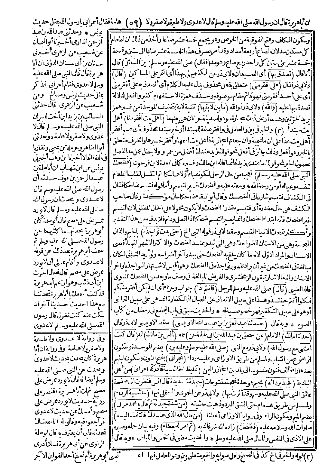 الثياب ولمسلم من طريق الأوزاعي وعليه رداء (نجراني) بفتح النون وسكون الجيم بعدها راء فألف فنون منسوب إلى بلد بين الحجاز واليمن (غليظ الحاشية فأدركه أعرابي) من أهل البادية (فجبذ بردائه) بجيم فموحدة فمعجمة مفتوحات (جبذة شديدة. قال أنس: فنظرت إلى صفحة عاتق النبي -صَلَّى اللَّهُ عَلَيْهِ وَسَلَّمَ- وقد أثرت بها) ولأبي ذر عن الحموي والمستملي: فيها (حاشية الرداء) ولمسلم من طريق همام حتى انشق البرد وذهبت حاشيته (من شدة جبذته ثم قال: يا محمد مر لي) بضم الميم وسكون الراء وفي رواية الأوزاعي أعطنا (من مال الله الذي عندك فالتفت إليه) صلوات الله وسلامه عليه (فضحك) زاده الله شرفًا لديه (ثم أمر له بعطاء) وفيه بيان حلمه وصبره على الأذى في النفس والمال -صَلَّى اللَّهُ عَلَيْهِ وَسَلَّمَ-.