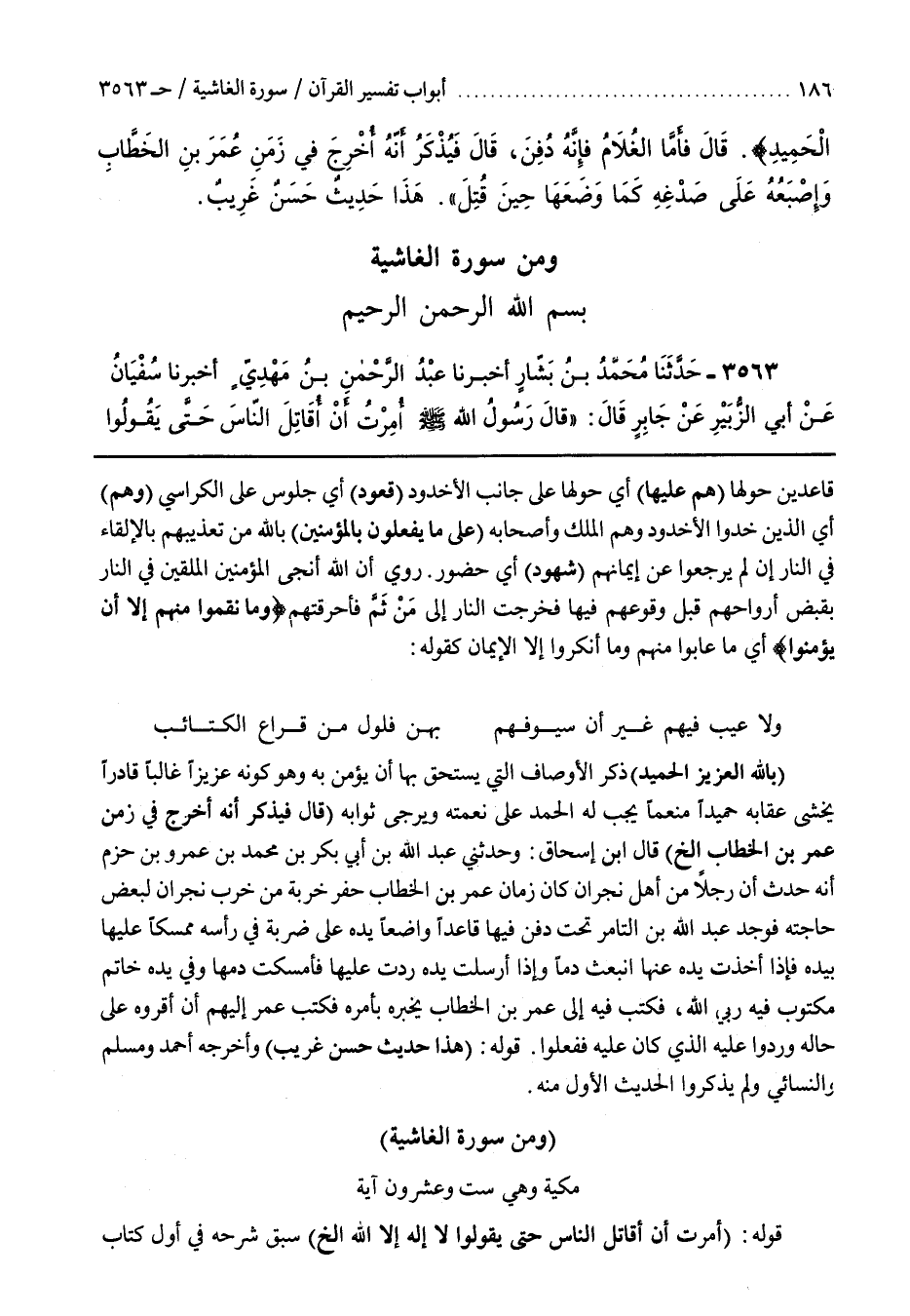 7 - باب وَمِنْ سُورَةِ الْغَاشِيَةِ مَكِّيَّةٌ وَهِيَ سِتٌّ وَعِشْرُونَ آيَةً [3341] قَوْلُهُ أُمِرْتُ أَنْ أُقَاتِلَ النَّاسَ حَتَّى يَقُولُوا لَا إِلَهَ إِلَّا اللَّهُ إِلَخْ سَبَقَ شَرْحُهُ فِي أَوَّلِ كِتَابِ