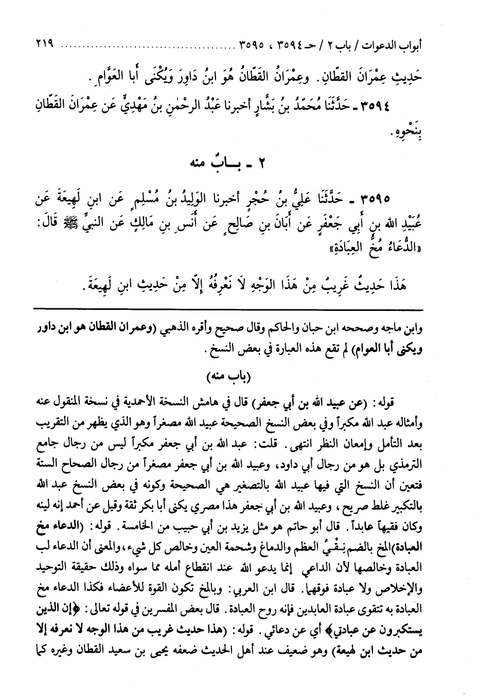 قُلْتُ عَبْدُ اللَّهِ بْنُ أَبِي جَعْفَرٍ مُكَبَّرًا لَيْسَ مِنْ رِجَالِ جَامِعِ التِّرْمِذِيِّ بَلْ هُوَ مِنْ رِجَالِ أَبِي دَاوُدَ وَعُبَيْدُ اللَّهِ بْنُ أَبِي جَعْفَرٍ مُصَغَّرًا مِنْ رِجَالِ الصِّحَاحِ السِّتَّةِ فَتَعَيَّنَ أَنَّ النُّسَخَ الَّتِي فِيهَا عُبَيْدُ اللَّهِ بِالتَّصْغِيرِ هِيَ الصَّحِيحَةُ وَكَوْنُهُ فِي بَعْضِ النُّسَخِ عَبْدَ اللَّهِ بِالتَّكْبِيرِ غَلَطٌ صَرِيحٌ وَعُبَيْدُ اللَّهِ بْنُ أَبِي جَعْفَرٍ هَذَا مِصْرِيٌّ يُكَنَى أَبَا بَكْرٍ ثِقَةٌ وَقِيلَ عَنْ أَحْمَدَ إِنَّهُ لَيَّنَهُ وَكَانَ فَقِيهًا عَابِدًا
