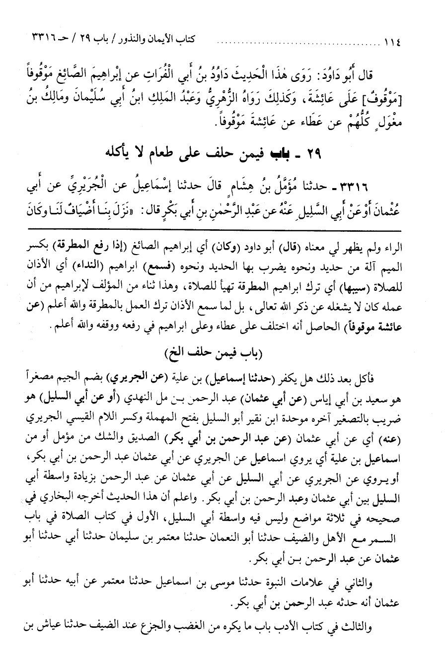 وَاعْلَمْ أَنَّ هَذَا الْحَدِيثَ أَخْرَجَهُ الْبُخَارِيُّ فِي صَحِيحِهِ فِي ثَلَاثَةِ مَوَاضِعَ وَلَيْسَ فيه واسطة أبي السليلالأول فِي كِتَابِ الصَّلَاةِ فِي بَابِ السَّمَرِ مَعَ الْأَهْلِ وَالضَّيْفِ حَدَّثَنَا أَبُو النُّعْمَانِ حَدَّثَنَا مُعْتَمِرُ بْنُ سُلَيْمَانَ حَدَّثَنَا أَبِي حَدَّثَنَا أَبُو عُثْمَانَ عَنْ عَبْدِ الرَّحْمَنِ بْنِ أَبِي بَكْرٍ