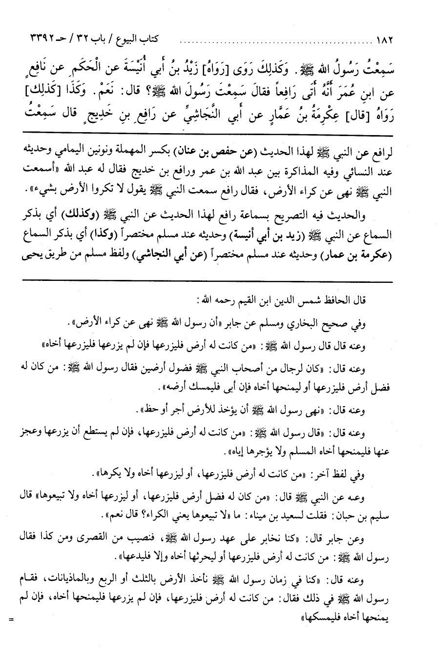 ــــــــــــQقال الحافظ شمس الدين بن القيم رحمه اللَّه وَفِي صَحِيح الْبُخَارِيّ وَمُسْلِم عَنْ جَابِر أن رسول الله صلى الله عليه وسلم نَهَى عَنْ كِرَاء الْأَرْض