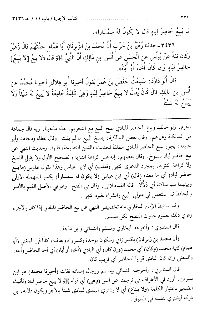 قَالَ بَعْضُهُمْ إِنَّهُ عَلَى كَرَاهَةِ التَّنْزِيَهِ وَالصَّحِيحُ الْأَوَّلُ وَلَا يُقْبَلُ النَّسْخُ وَلَا كَرَاهَةُ التَّنْزِيَهِ بِمُجَرَّدِ الدَّعْوَى انْتَهَى (فَقُلْتُ) أَيْ لِابْنِ عَبَّاسٍ وَهَذَا مَقُولُ طاووس (مَا يَبِيعُ حَاضِرٌ لِبَادٍ) أَيْ مَا مَعْنَاهُ (قال) أي بن عَبَّاسٍ (لَا يَكُونُ لَهُ سِمْسَارًا) بِكَسْرِ الْمُهْمَلَةِ الْأُولَى وَبَيْنَهُمَا مِيمٌ سَاكِنَةٌ أَيْ دَلَّالًا
