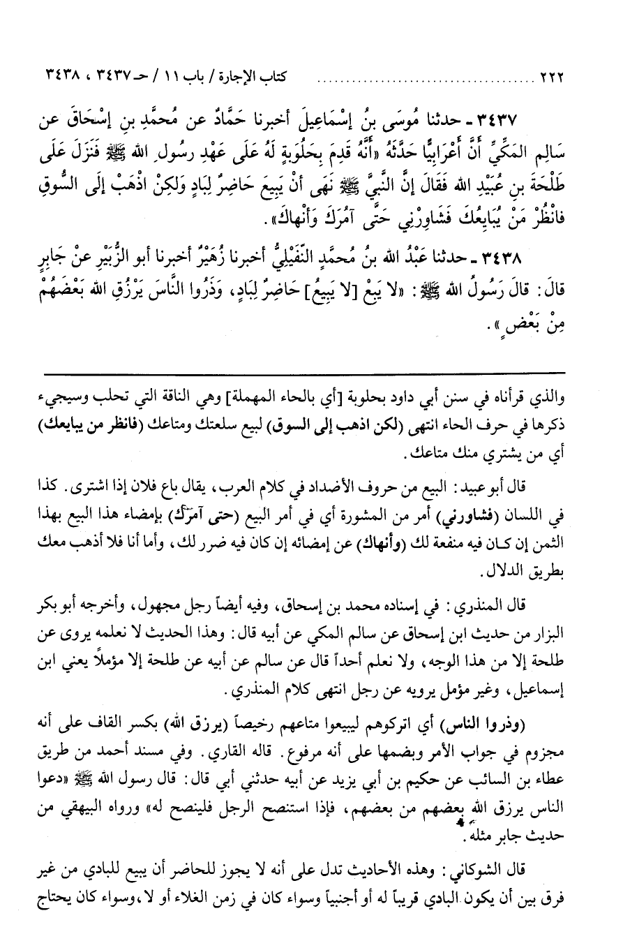 قَالَ الشَّوْكَانِيُّ وَهَذِهِ الْأَحَادِيثُ تَدُلُّ عَلَى أَنَّهُ لَا يَجُوزُ لِلْحَاضِرِ أَنْ يَبِيعَ لِلْبَادِي مِنْ غَيْرِ فَرْقٍ بَيْنَ أَنْ يَكُونَ الْبَادِي قَرِيبًا لَهُ أَوْ أَجْنَبِيًّا وَسَوَاءٌ كَانَ فِي زمن الغلاء أولا وَسَوَاءٌ كَانَ يَحْتَاجُ