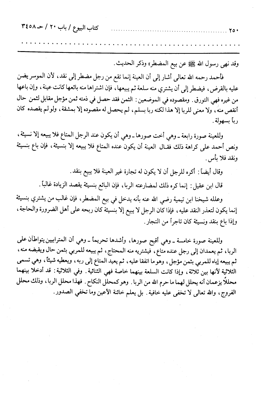 وَعَلَّلَهُ شَيْخنَا بن تَيْمِيَة رَضِيَ اللَّه عَنْهُ بِأَنَّهُ يَدْخُل فِي بَيْع الْمُضْطَرّ فَإِنَّ غَالِب مَنْ يَشْتَرِي بِنَسِيئَةٍ إِنَّمَا يَكُون لِتَعَذُّرِ النَّقْد عَلَيْهِ فَإِذَا كَانَ الرَّجُل لَا يَبِيع إِلَّا بِنَسِيئَةٍ كَانَ رِبْحه عَلَى أَهْل الضَّرُورَة وَالْحَاجَة وَإِذَا بَاعَ بِنَقْدٍ وَنَسِيئَة كَانَ تَاجِرًا مِنْ التُّجَّار