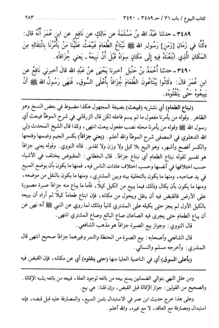 [3494] (بأعلى السوق) أي في الناصية الْعُلْيَا مِنْهَا (حَتَّى يَنْقُلُوهُ) أَيْ عَنْ مَكَانِهِ فَإِنَّ الْقَبْضَ فِيهِ