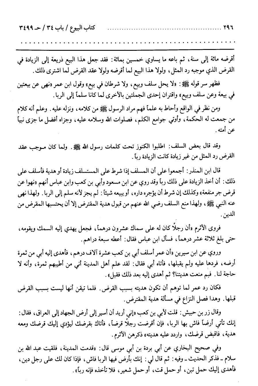 فَأَسْلَفَ عَلَى ذَلِكَ أَنَّ أَخْذ الزِّيَادَة عَلَى ذلك ربآ وقد روى عن بن مسعود وأبي بن كعب وبن عَبَّاس أَنَّهُمْ نَهَوْا عَنْ قَرْض جَرّ مَنْفَعَة وَكَذَلِكَ إِنْ شَرَطَ أَنْ يُؤَجِّرهُ دَاره أَوْ يَبِيعهُ شَيْئًا لَمْ يَجُزْ لِأَنَّهُ سَلَّمَ إِلَى الربا