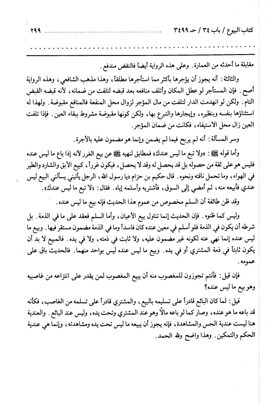وَبَيْع مَا لَيْسَ عِنْده إِنَّمَا نُهِيَ عَنْهُ لِكَوْنِهِ غَيْر مَضْمُون عَلَيْهِ وَلَا ثَابِت فِي ذِمَّته وَلَا فِي يَده