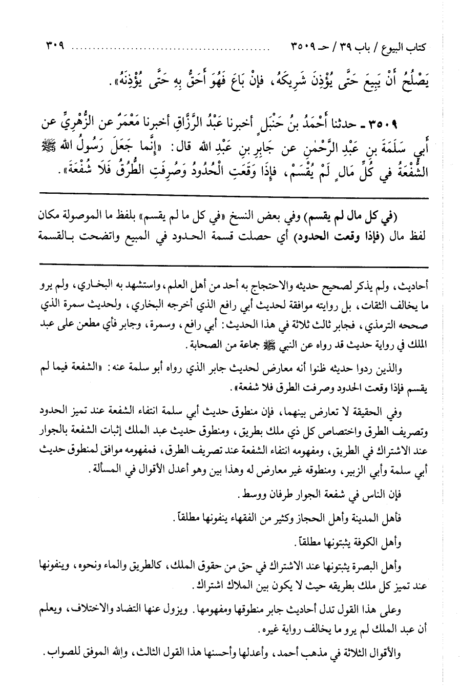 [3514] (فِي كُلِّ مَالٍ لَمْ يُقْسَمْ) وَفِي بَعْضِ النسخ في كل مالم يُقْسَمْ بِلَفْظِ مَا الْمَوْصُولَةِ مَكَانَ لَفْظِ مَالٍ (فَإِذَا وَقَعَتِ الْحُدُودُ) أَيْ حَصَلَتْ قِسْمَةُ الْحُدُودِ فِي الْمَبِيعِ وَاتَّضَحَتْ بِالْقِسْمَةِ