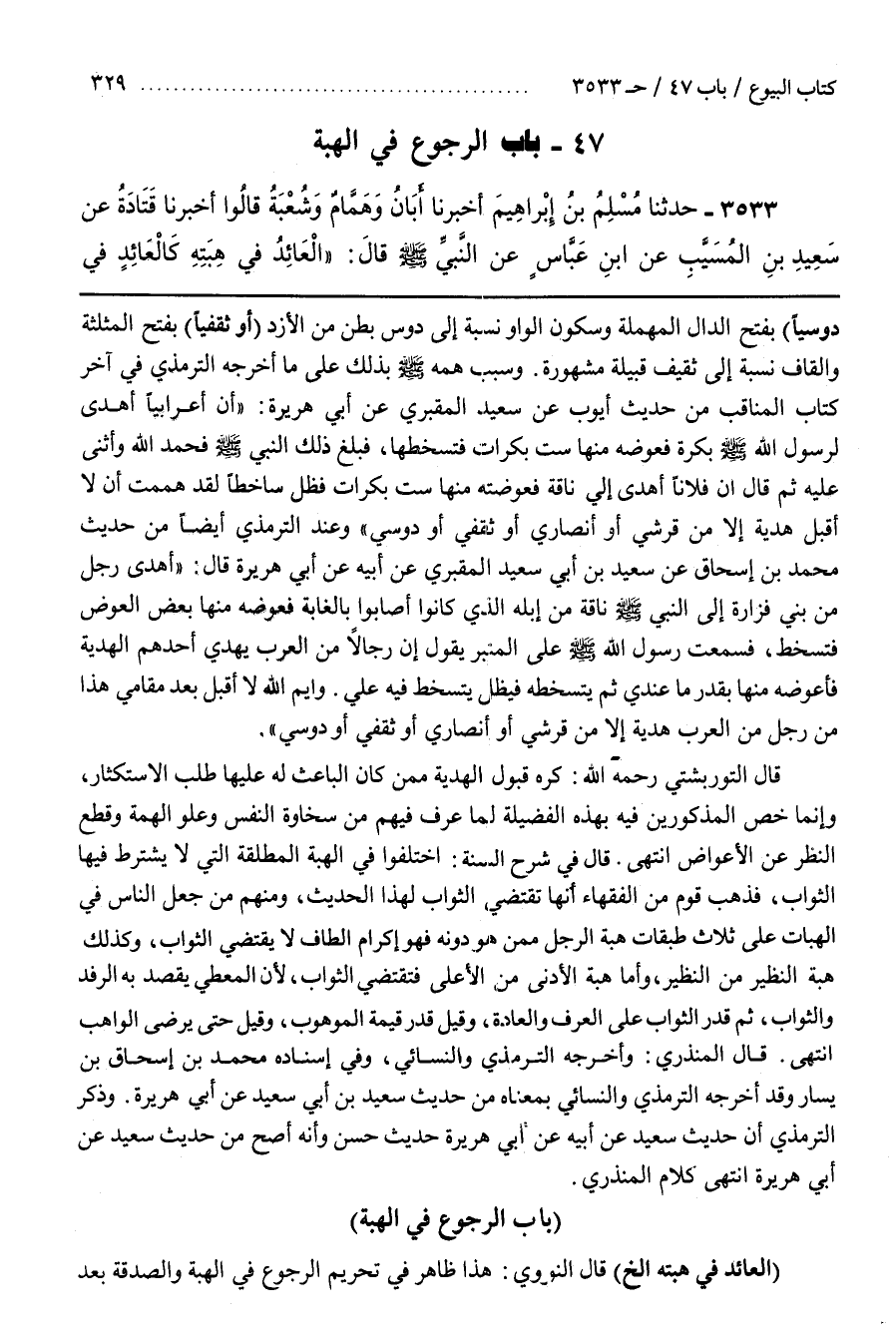 [3538] (الْعَائِدُ فِي هِبَتِهِ إِلَخْ) قَالَ النَّوَوِيُّ هَذَا ظَاهِرٌ فِي تَحْرِيمِ الرُّجُوعِ فِي الْهِبَةِ وَالصَّدَقَةِ بَعْدَ