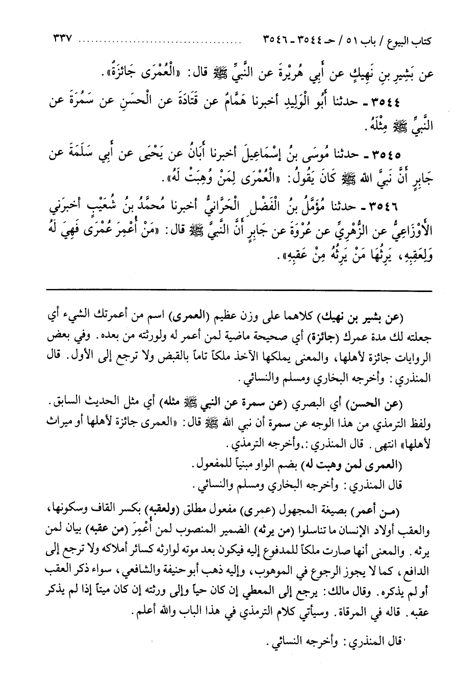 (عَنْ بَشِيرِ بْنِ نَهِيكٍ) كِلَاهُمَا عَلَى وَزْنِ عَظِيمٍ (الْعُمْرَى) اسْمٌ مِنْ أَعْمَرْتُكَ الشَّيْءَ أَيْ جَعَلْتُهُ لَكَ مُدَّةَ عُمْرِكَ (جَائِزَةٌ) أَيْ صَحِيحَةٌ مَاضِيَةٌ لِمَنْ أُعْمِرَ لَهُ وَلِوَرَثَتِهِ مِنْ بَعْدِهِ