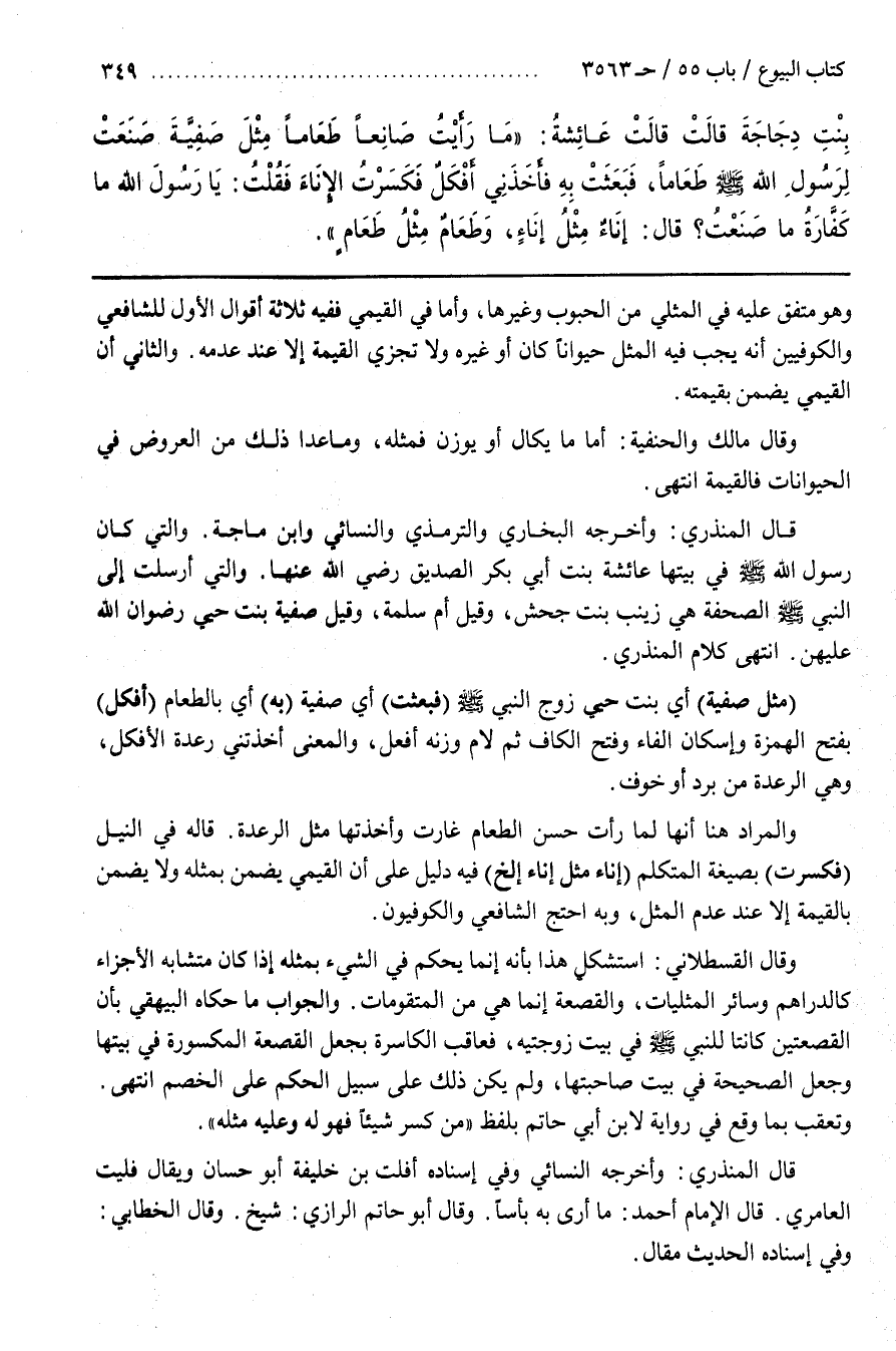 وَقَالَ الْقَسْطَلَّانِيُّ اسْتُشْكِلَ هَذَا بِأَنَّهُ إِنَّمَا يُحْكَمُ فِي الشَّيْءِ بِمِثْلِهِ إِذَا كَانَ مُتَشَابِهَ الْأَجْزَاءِ كَالدَّرَاهِمِ وَسَائِرِ الْمِثْلِيَّاتِ وَالْقَصْعَةُ إِنَّمَا هِيَ مِنَ الْمُتَقَوَّمَاتِ