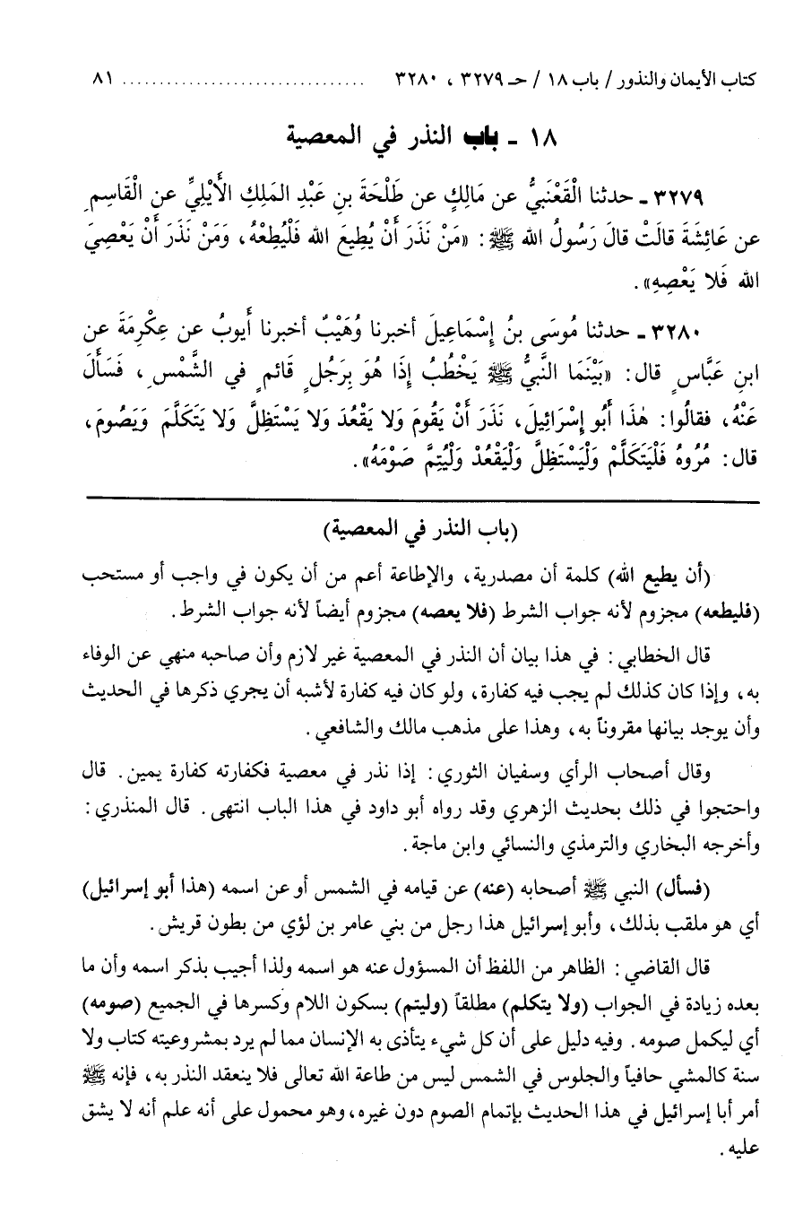 18 - (باب النَّذْرِ فِي الْمَعْصِيَةِ)