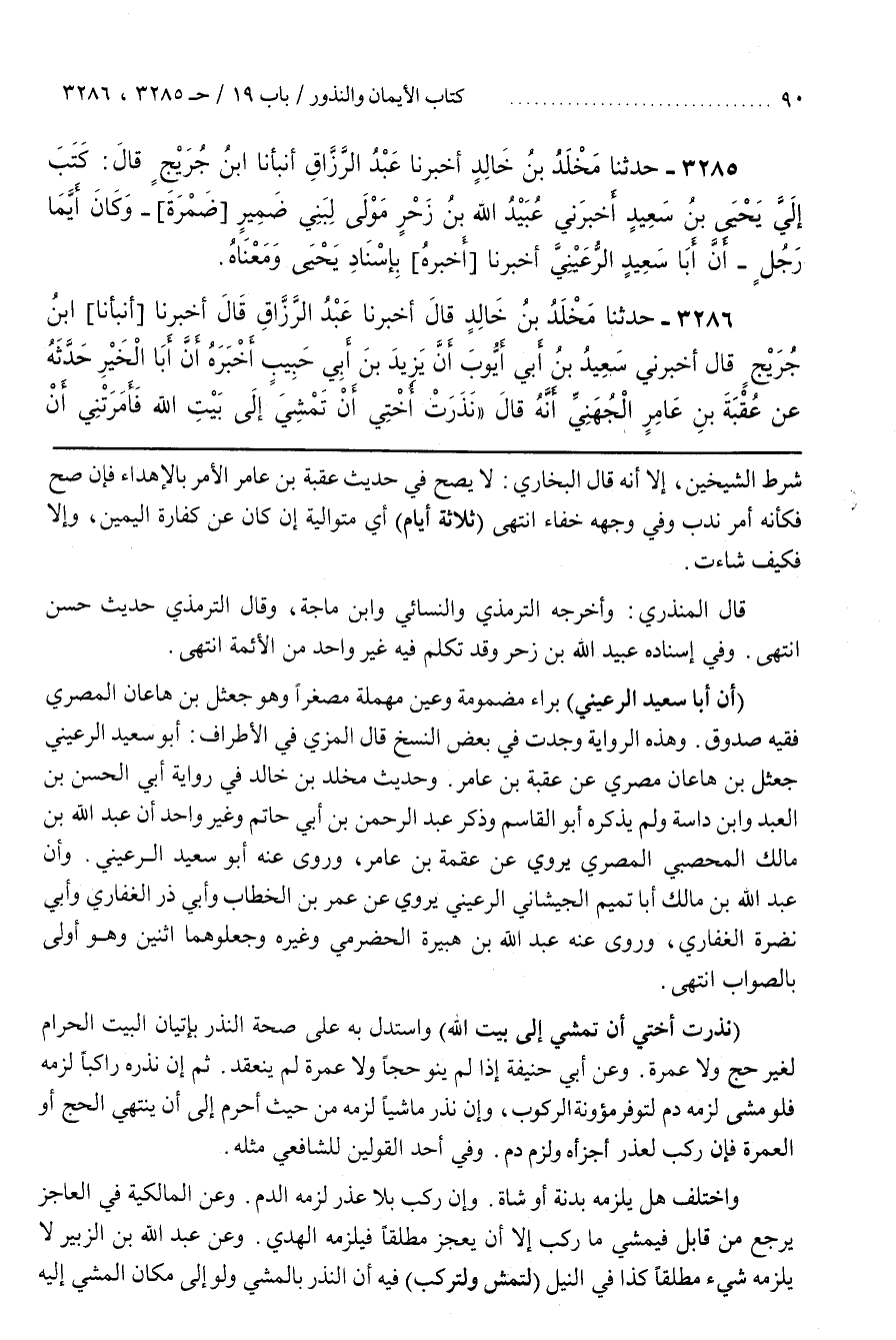 [3299] (نَذَرَتْ أُخْتِي أَنْ تَمْشِيَ إِلَى بَيْتِ اللَّهِ) وَاسْتُدِلَّ بِهِ عَلَى صِحَّةِ النَّذْرِ بِإِتْيَانِ الْبَيْتِ الْحَرَامِ لِغَيْرِ حَجٍّ وَلَا عُمْرَةٍ
