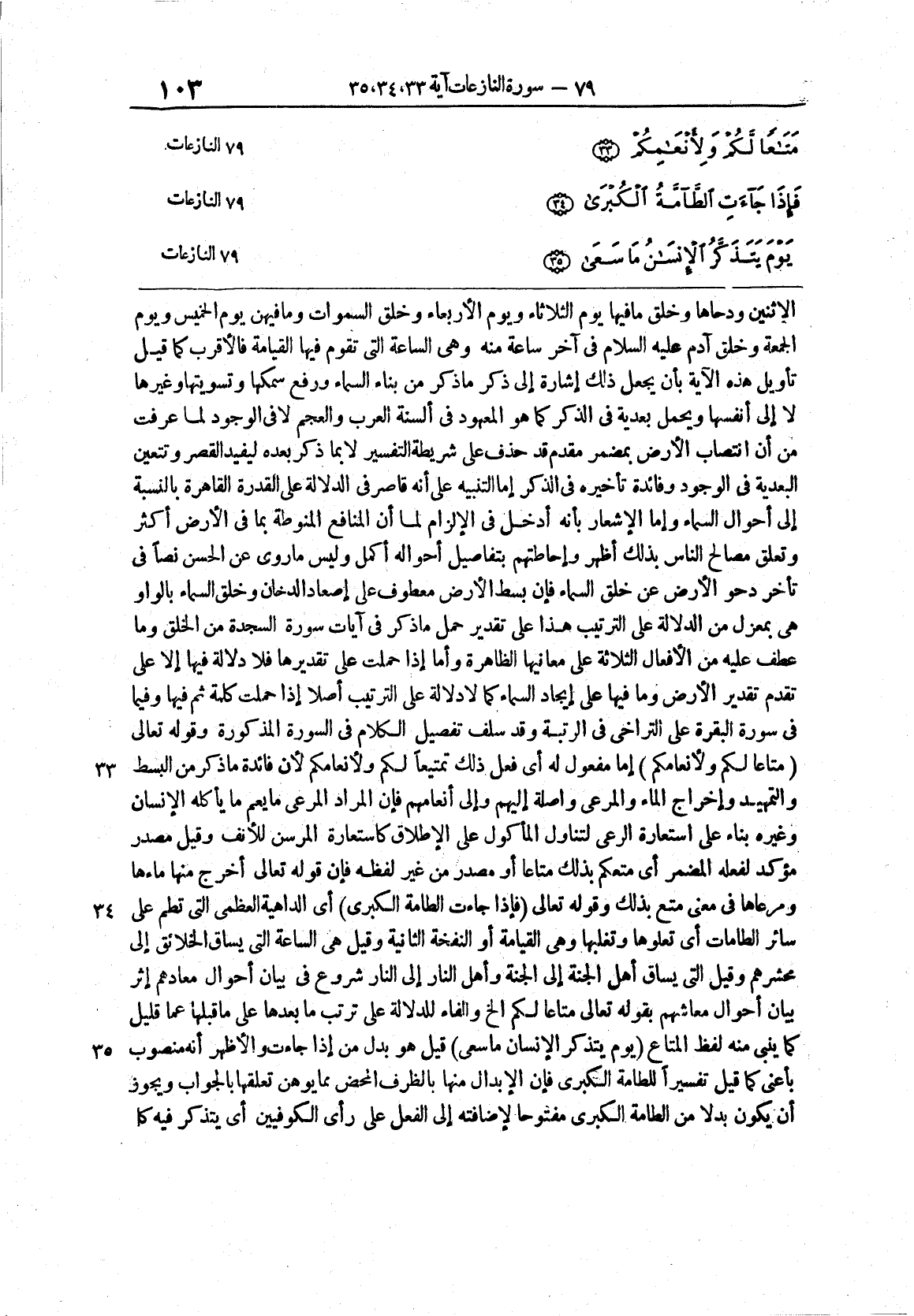 إمَّا مفعول له أي فعل ذلكَ تمتيعاً لكُم ولأنعامِكم لأنَّ فائدةَ ما ذُكرَ من البسط والتميهد وإخراجِ الماءِ والمَرْعى واصلةٌ إليهم وإلى أنعامِهم فإن المراد المرعى ما يعمُّ ما يأكلُه الإنسانُ وغيرُه بناءً على استعارةِ الرَّعي لتناولِ المأكولِ على الإطلاقِ كاستعارةِ المرسنِ للأنفِ وقيلَ مصدرٌ مؤكِّدٌ لفعلِه المضمرِ أي متَّعكُم بذلكَ متاعاً أو مصدرٌ من غير لفظه فإن قولَه تعالَى أَخْرَجَ مِنْهَا مَاءهَا ومرعاها في معنى متَّع بذلكَ وقوله تعالى