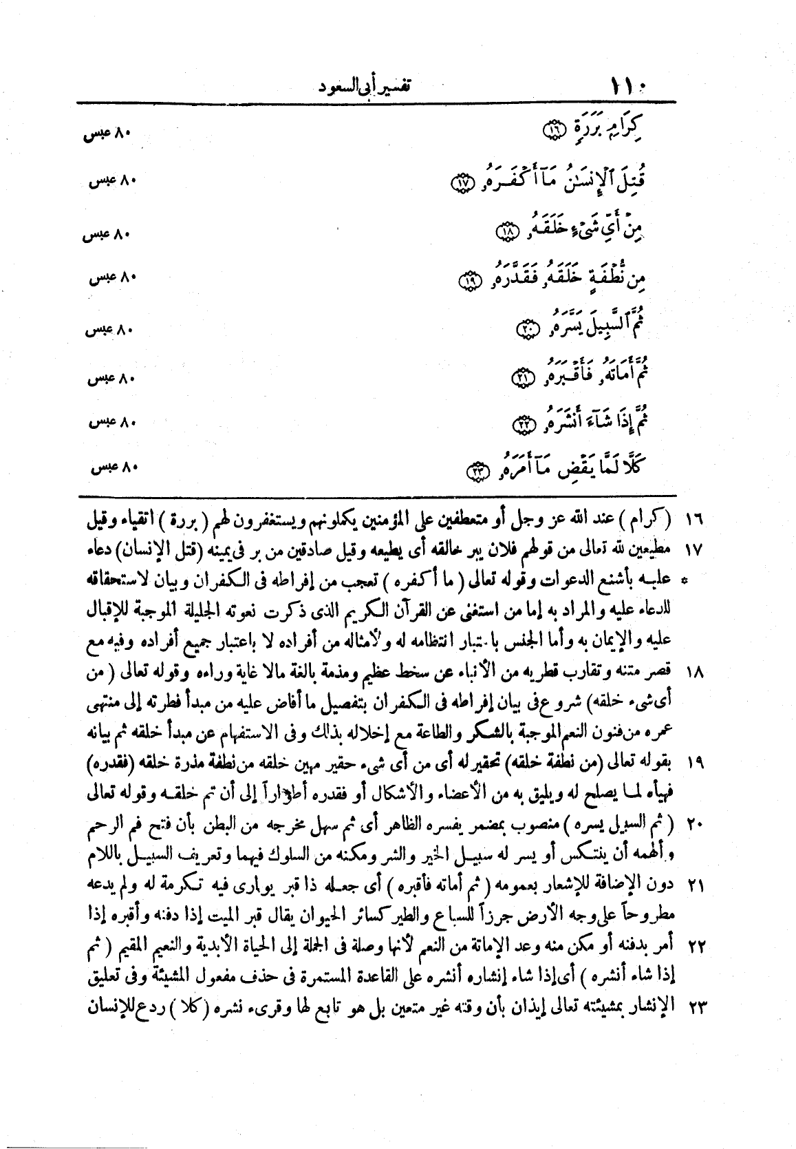 ثُمَّ السبيل يَسَّرَهُ منصوبٌ بمُضمرٍ يفسرُهُ الظاهرُ أيْ ثم سهَّلَ مخرجَهُ من البطن بأن فتح فتحَ فمَ الرحمِ وألهمَهُ أنْ ينتكسَ أو يسرَ له سبيلَ الخيرِ والشرِّ ومكنه من السلوك وتعريفُ السبيلِ باللامِ دونَ الإضافةِ للإشعارِ بعمومِه