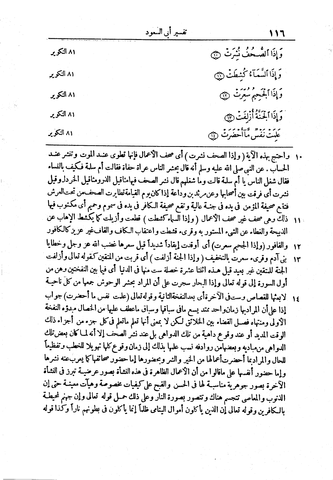 سورة التكوير (10 14) واحتجَّ بهذهِ الآيةِ