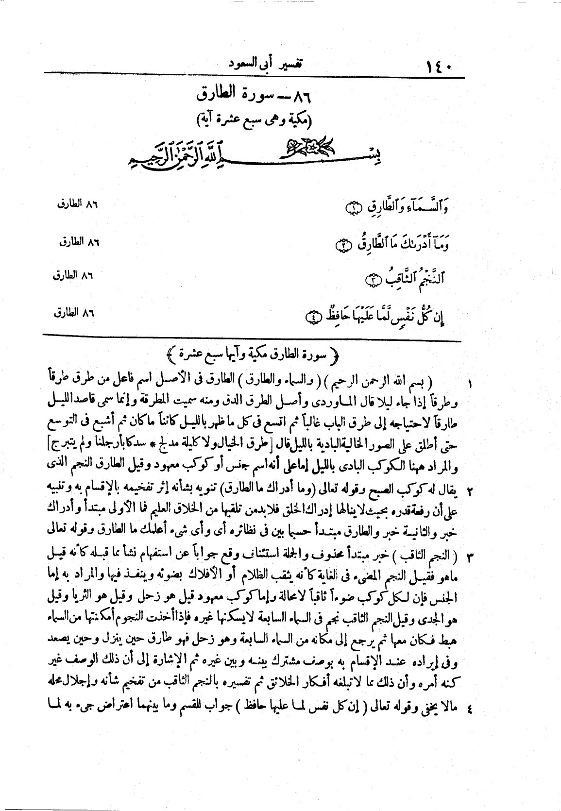 سورة الطارق مكية وآيها سبع عشرة
