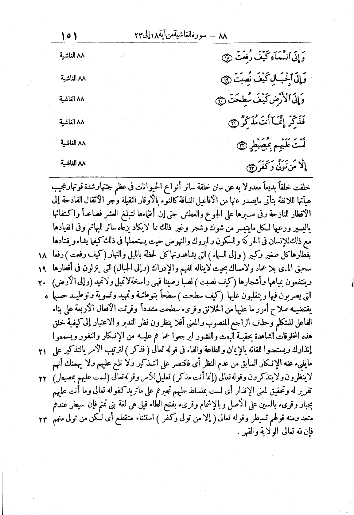 سطحاً بتوطئةٍ وتمهيدٍ وتسويةٍ وتوطيدٍ حسبما يقتضيهِ صلاحُ أمورِ ما عليها من الخلائقِ وقُرِىءَ سُطِّحتْ مُشدداً وقُرِئتْ الأفعالُ الأربعةُ على بناء الفاعل للمتلكم وحذف الراجعِ المنصوبِ والمعنى أفلا ينظرونَ نظرَ التدبرِ والاعتبارِ إلى كيفيةِ خلقِ هذه المخلوقاتِ الشاهدةِ بحقيةِ البعثِ والنشورِ ليرجعُوا عمَّا هُم عليهِ من الإنكارِ والنفورِ ويسمعُوا إنذاركَ ويستعدُّوا للقائِه بالإيمانِ والطاعةِ والفاءُ في قولِه تعالى