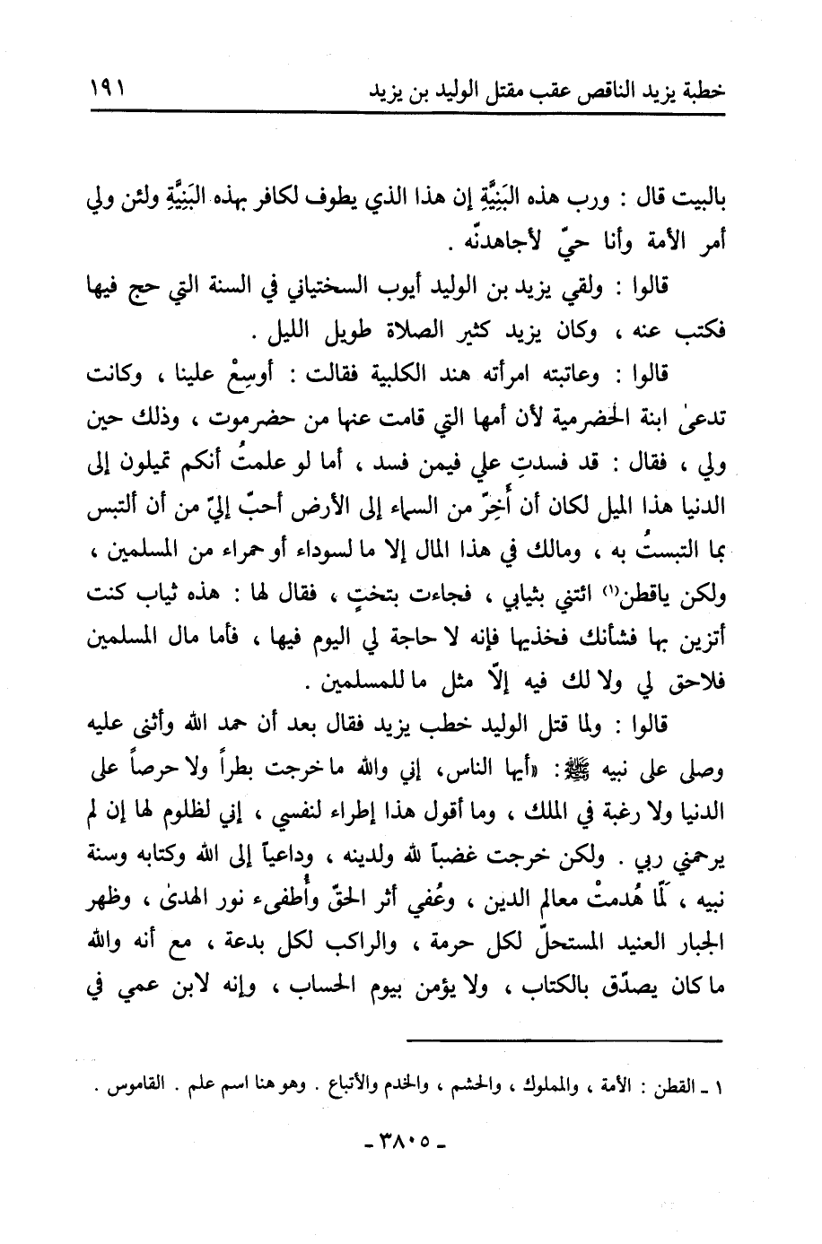 [1] القطن: الأمة، والمملوك، والحشم، والخدم والأتباع. وهو هنا اسم علم. القاموس.