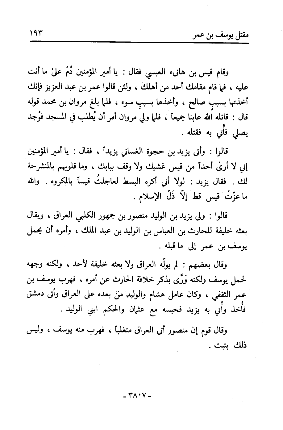 وقال قوم إن منصور أتى العراق متغلبًا، فهرب منه يوسف، وليس ذلك بثبت.