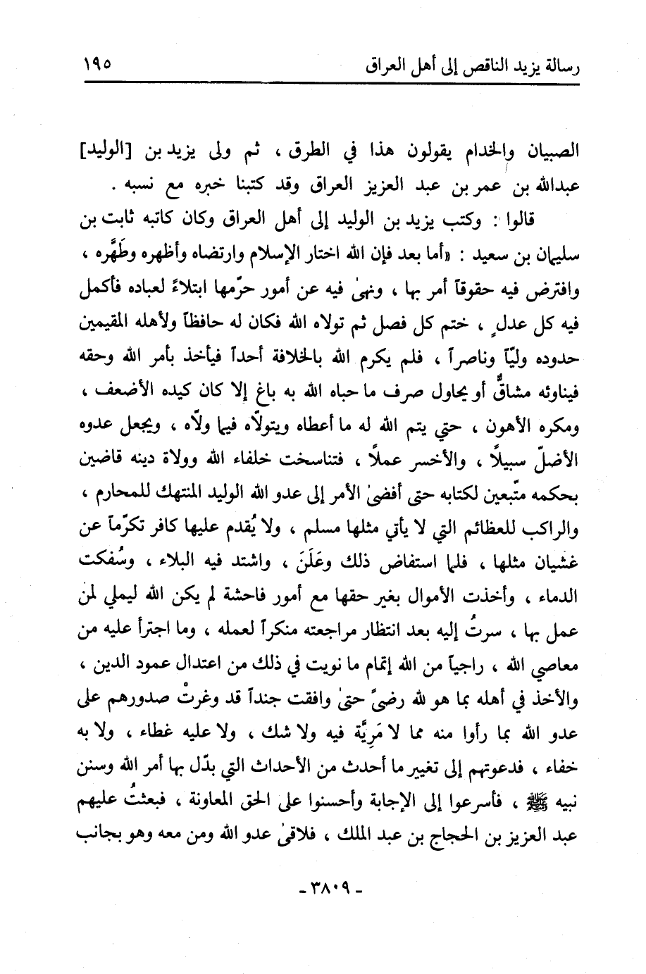 [رسالة يزيد الناقص إلى أهل العراق]