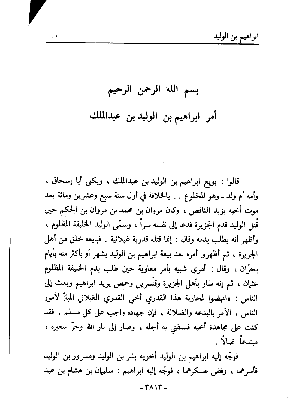 أمر إِبْرَاهِيم بْن الوليد بن عبد الملك