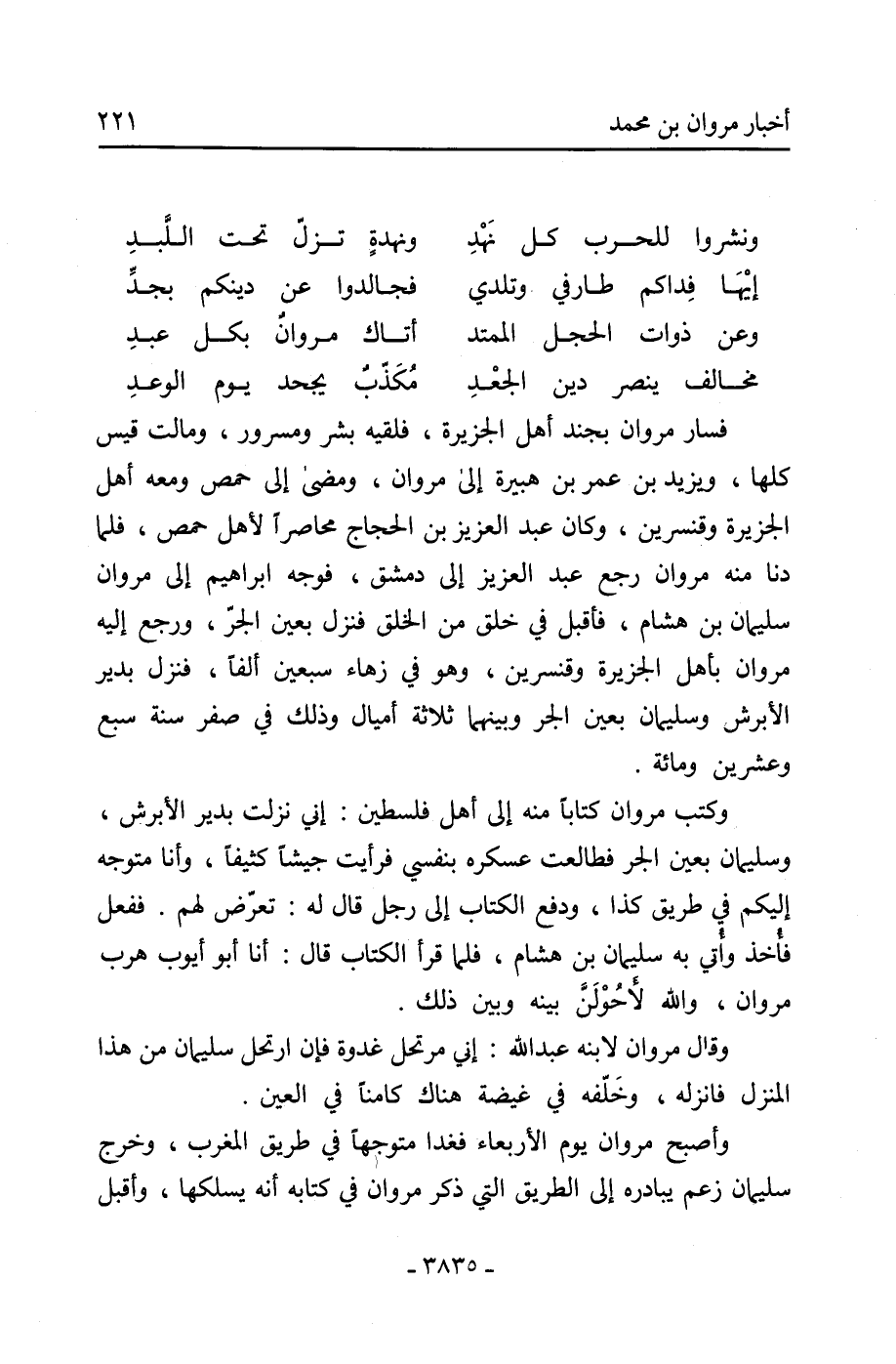 وأصبح مروان يوم الأربعاء فغدا متوجهًا في طريق المغرب، وخرج سليمان زعم يبادره إلى الطريق التي ذكر مروان في كتابه أنه يسلكها، وأقبل