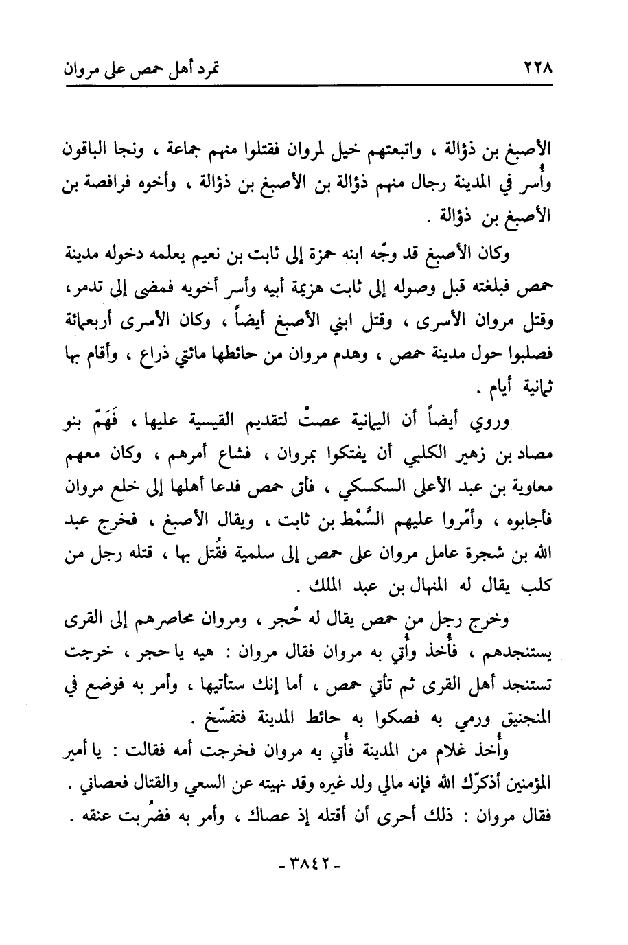 وخرج رجل من حمص يُقال له حُجر، ومروان محاصرهم إلى القرى يستنجدهم، فأخذ وأُتي به مروان فقال مروان: هيه يا حجر، خرجتَ تستنجد أهل القرى ثم تأتي حمص، أما إنك ستأتيها، وأمر به فوضع في المنجنيق ورمي به فصكوا به حائط المدينة فتفسّخ.