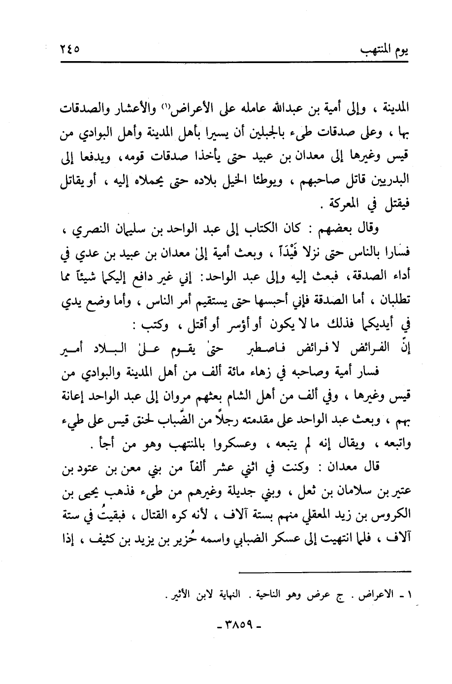 المدينة، وإلى أمية بن عبد الله عامله على الأعراض [1] والأعشار والصدقات بها، وعلى صدقات طيّئ بالجبلين أن يسيرا بأهل المدينة وأهل البوادي من قيس وغيرها إلى معدان بن عبيد حتى يأخذا صدقات قومه، ويدفعا إلى البدريين قاتل صاحبهم، ويوطئا الخيل بلاده حتى يحملاهُ إليه، أو يقاتل فيقتل في المعركة.