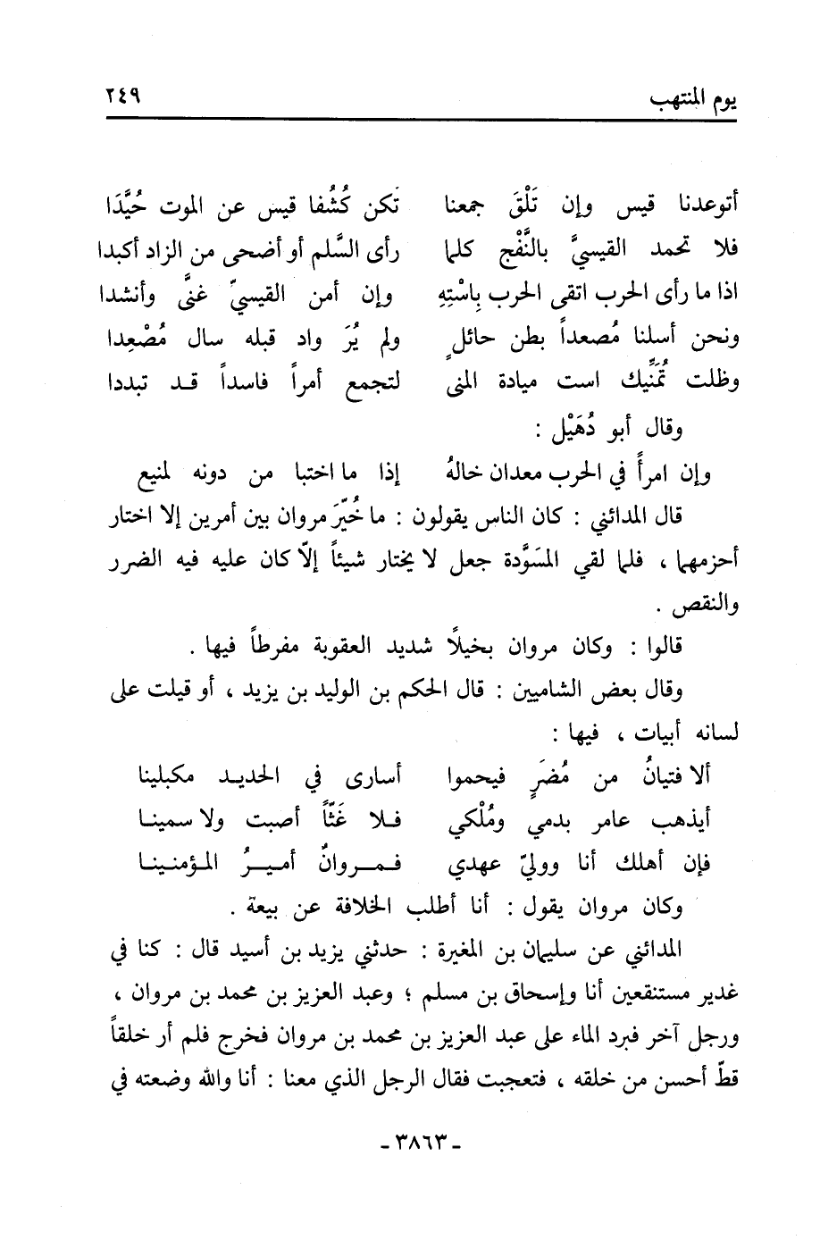 قال المدائني: كان الناس يقولون: ما خُيِّرَ مروان بين أمرين إلا اختار أحزمهما، فلما لقي المسوَّدة جعل لا يختارُ شيئًا إلا كان عليه فيه الضرر والنقص.