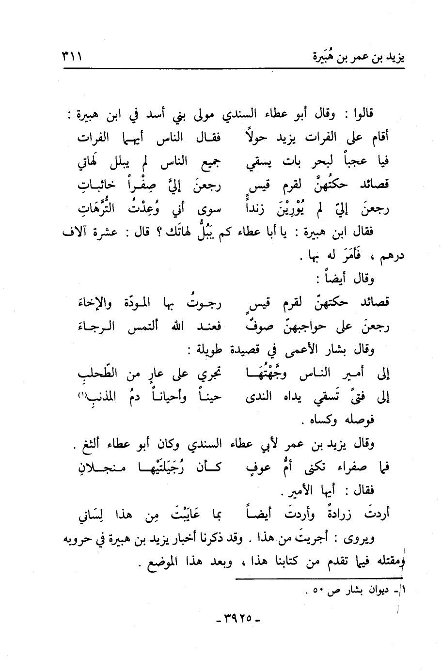 قالوا: وقال أبو عطاء السندي مولى بني أسد فِي ابن هبيرة:
