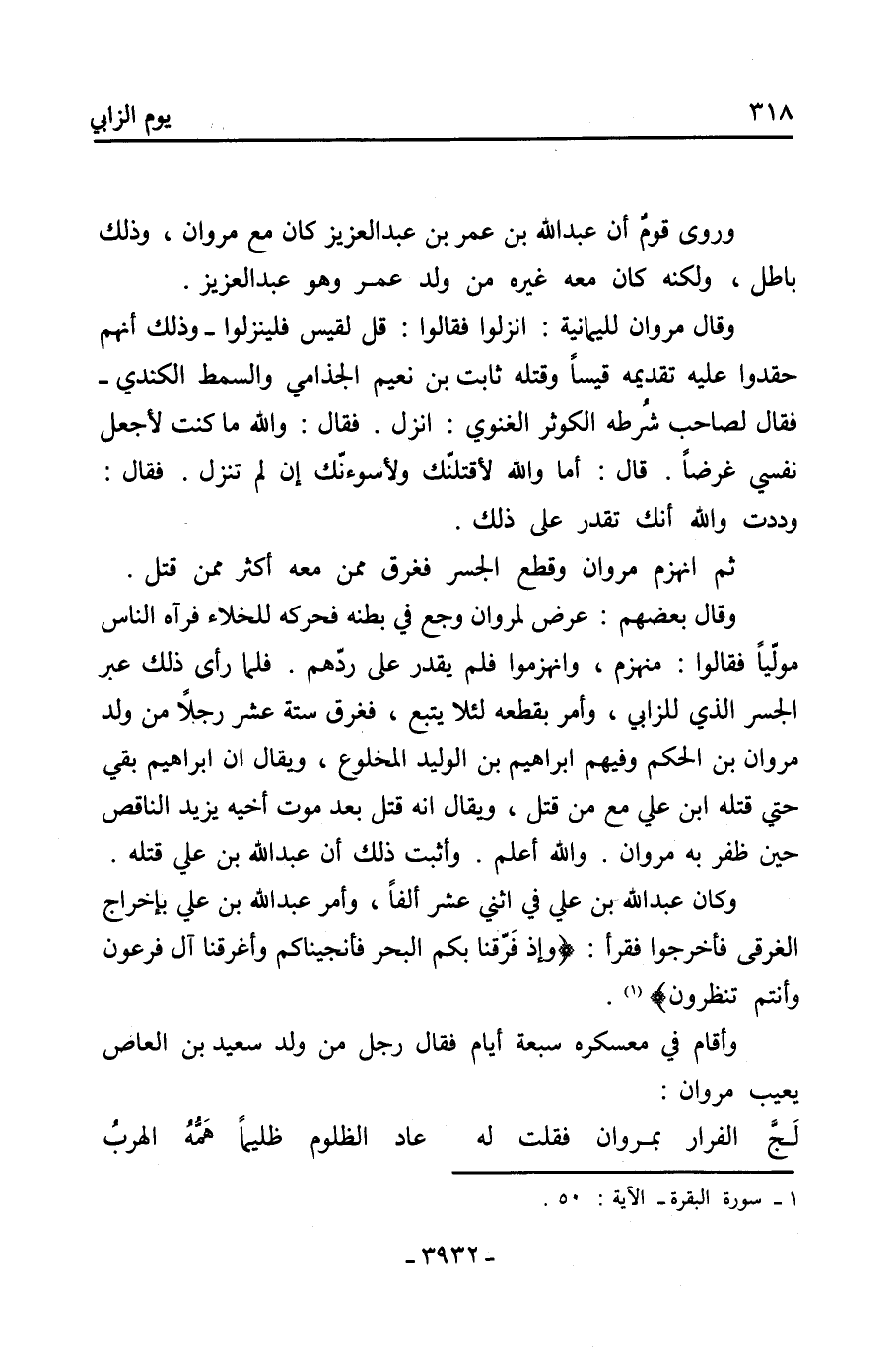 وكان عَبْد الله بن عَليّ فِي اثني عشر ألفًا، وأمر عَبْد الله بن عَليّ بإخراج الغرقى فأخرجوا فقرأ: وَإِذْ فَرَقْنَا بِكُمُ الْبَحْرَ فَأَنْجَيْنَاكُمْ وَأَغْرَقْنَا آلَ فِرْعَوْنَ وَأَنْتُمْ تنظرون [1] .