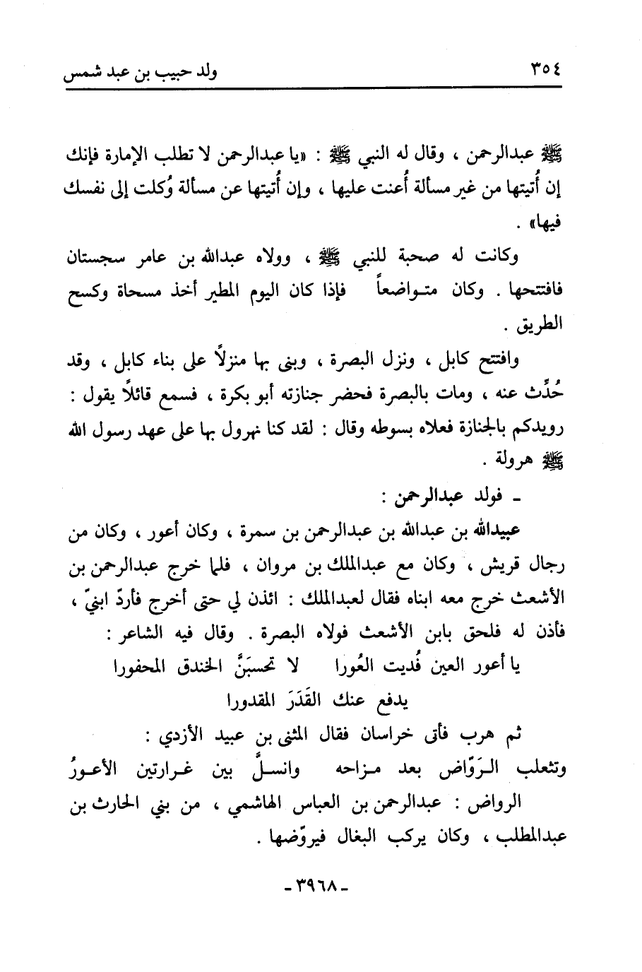 صَلَّى اللهُ عَلَيْهِ وَسَلَّمَ عَبْد الرَّحْمَن، وقال له النَّبِيّ صَلَّى اللهُ عَلَيْهِ وَسَلَّمَ: «يا عَبْد الرَّحْمَن لا تطلب الإمارة فإنك إن أُتيتها من غير مسألة أعنتَ عليها، وإن أتيتها عَن مسألة وُكلت إلى نفسك فيها» .