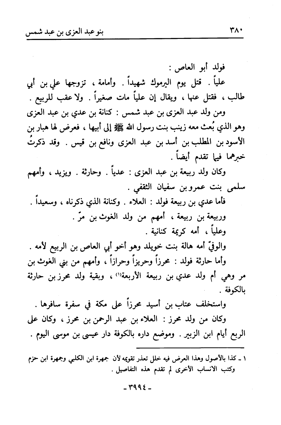 [1] كذا بالأصول وهذا العرض فيه خلل تعذر تقويمه لأن جمهرة ابن الكلبي وجمهرة ابن حزم وكتب الأنساب الأخرى لم تقدم هذه التفاصيل.