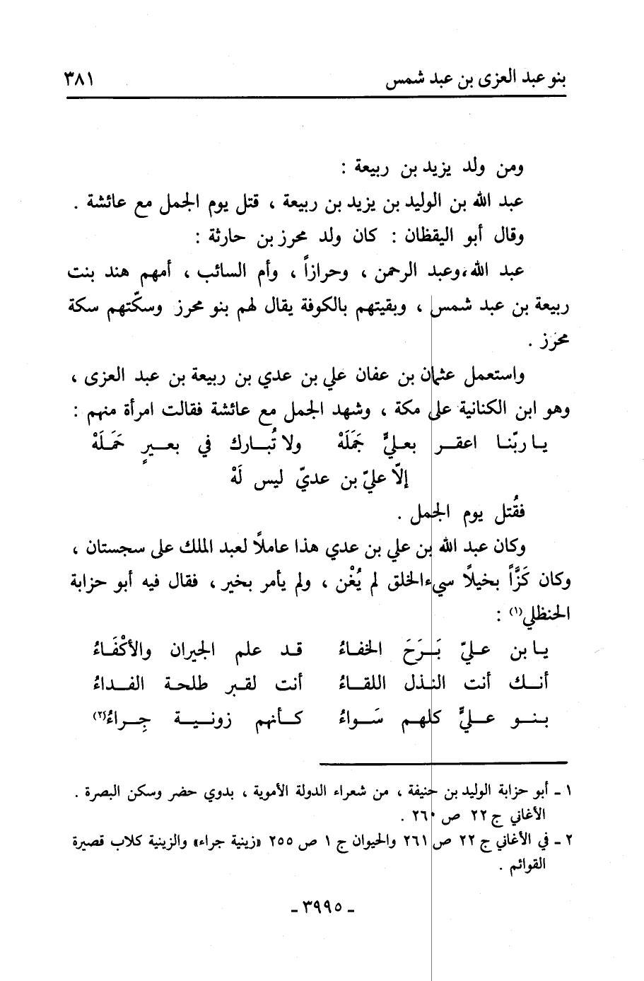 يا ربّنا اعقر بعليٍّ جَمَلَهُ ... وَلا تُبَارِكْ فِي بَعِيرٍ حَمَلَهُ
