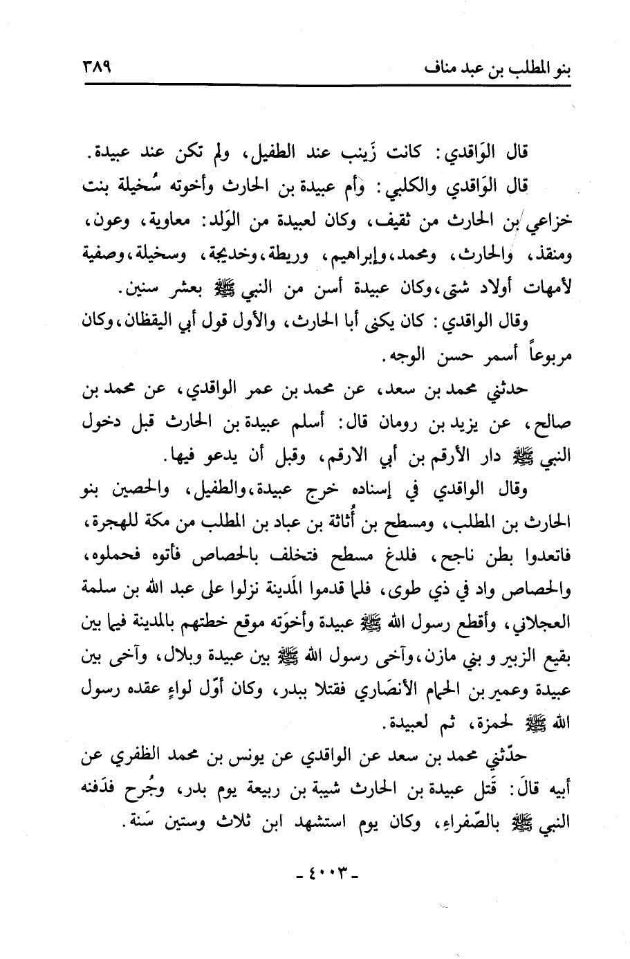 حَدَّثَنِي مُحَمَّدُ بْنُ سَعْدٍ، عَنْ مُحَمَّدِ بْنِ عُمَرَ الْوَاقِدِيِّ، عَنْ مُحَمَّدِ بْنِ صَالِحٍ، عَنْ يَزِيدَ بْن رومان قَالَ: أسلم عبيدة بن الحارث قبل دخول النبي صَلَّى اللَّهُ عَلَيْهِ وَسَلَّمَ دار الأرقم بْن أبي الأرقم، وقبل أن يدعو فيها.