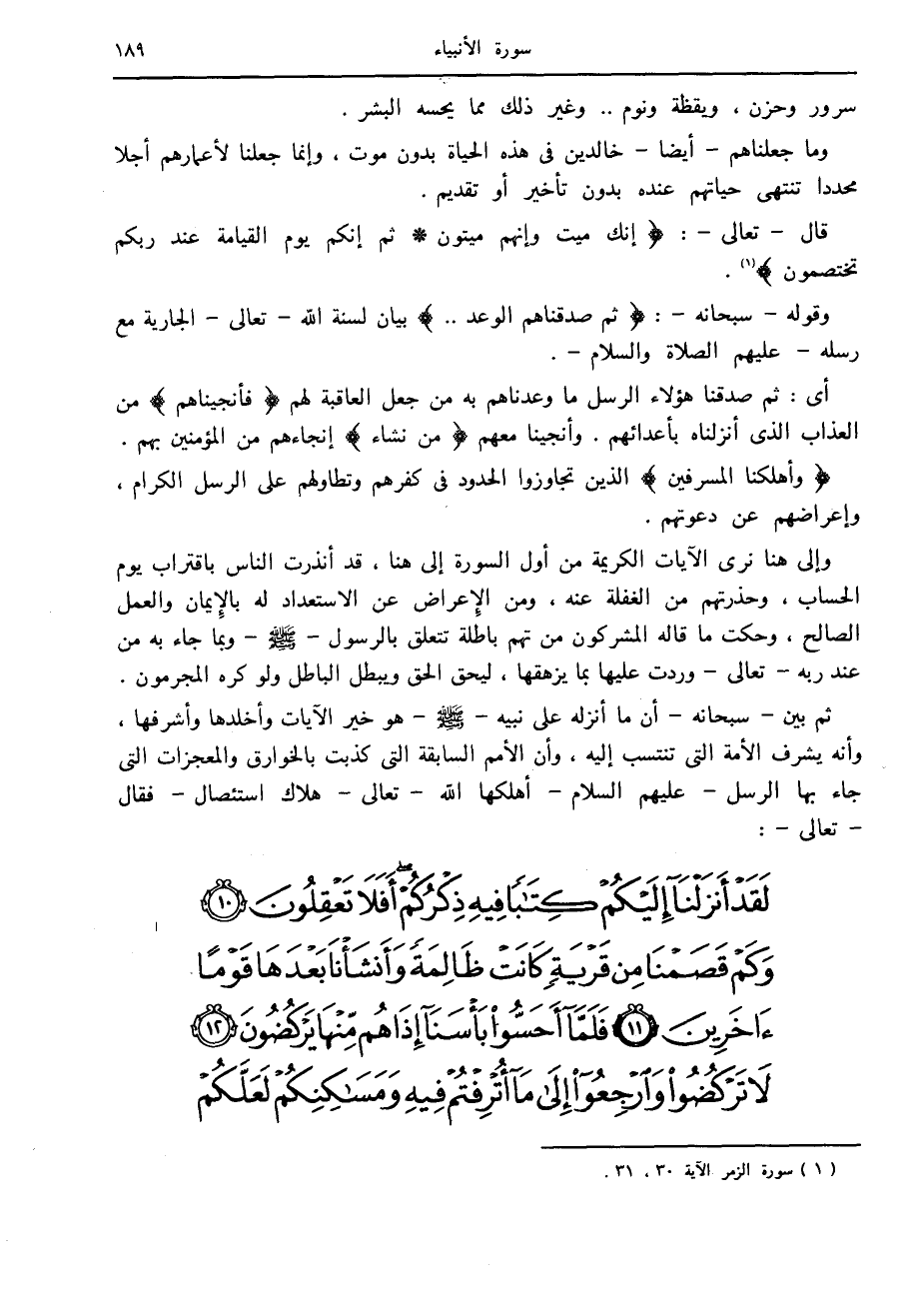 وإلى هنا نرى الآيات الكريمة من أول السورة إلى هنا، قد أنذرت الناس باقتراب يوم الحساب، وحذرتهم من الغفلة عنه، ومن الإعراض عن الاستعداد له بالإيمان والعمل الصالح، وحكت ما قاله المشركون من تهم باطلة تتعلق بالرسول صلّى الله عليه وسلّم وبما جاء به من عند ربه- تعالى- وردت عليها بما يزهقها، ليحق الحق ويبطل الباطل ولو كره المجرمون.
