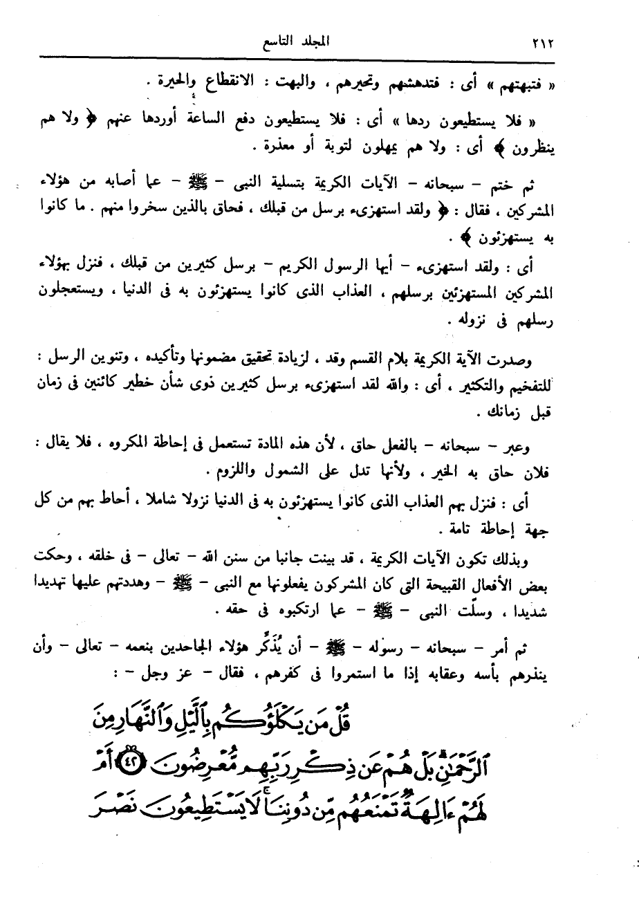 «فلا يستطيعون ردها» أى: فلا يستطيعون دفع الساعة أوردها عنهم وَلا هُمْ يُنْظَرُونَ أى: ولا هم يمهلون لتوبة أو معذرة.